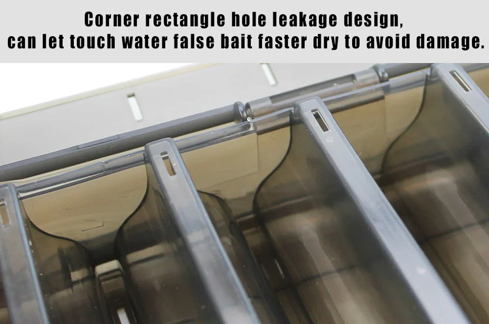 El estuche fácil de ver le ayuda a encontrar sus aparejos de pesca de un vistazo. Construcción duradera, resistente a impactos y resistente a la corrosión.