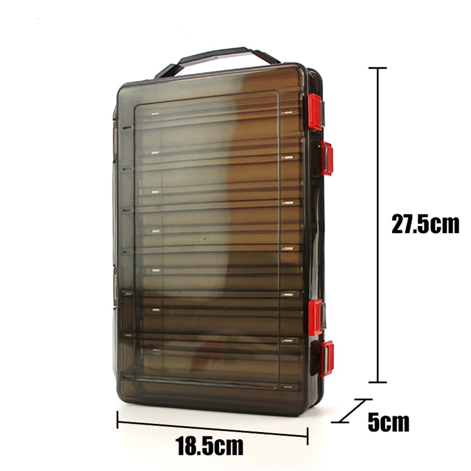 Doble cara, 14 compartimentos para guardar sus señuelos.