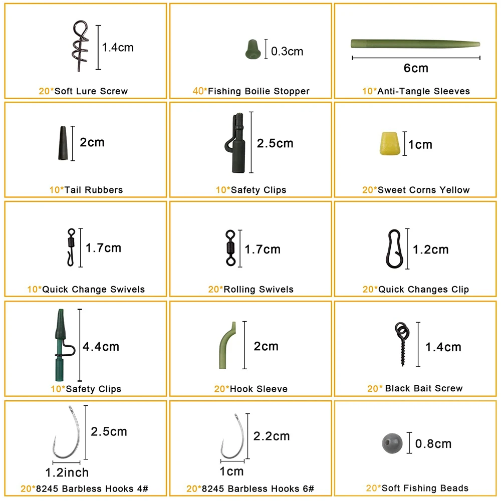 【POPULAR GEAR】277Pcs Fishing Tackles Set have all kinds of carp fishing equipment included. Suitable for fishing in river and sea at different depths.