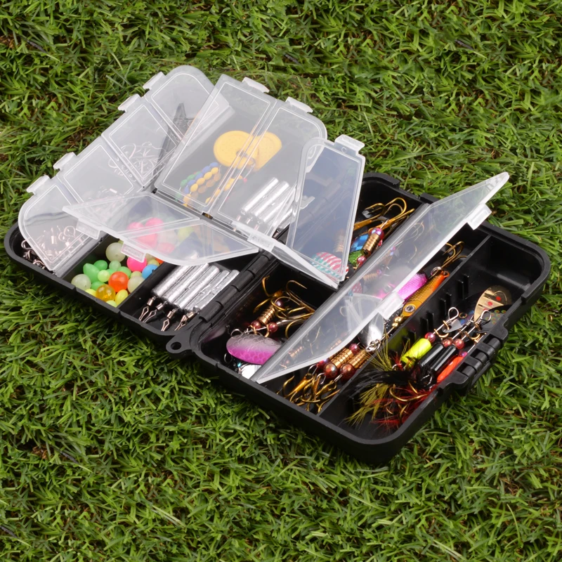 Cantidad: 118, Material: Gancho de acero de alto carbono, plástico, metal Peso del cebo cuchara: 3G-12,5G Paquete: Caja de pesca negra Color: mezcla de colores Característica: Diferentes tipos de señuelos de metal, más opciones Anticorrosión, se puede utilizar para agua salada y agua dulce Principal utilizado para señuelo Pike Trout Bass Spoon Paquete de caja de plástico, fácil de llevar Nota: Puede haber algunos errores de medición, no se preocupe. Gracias
