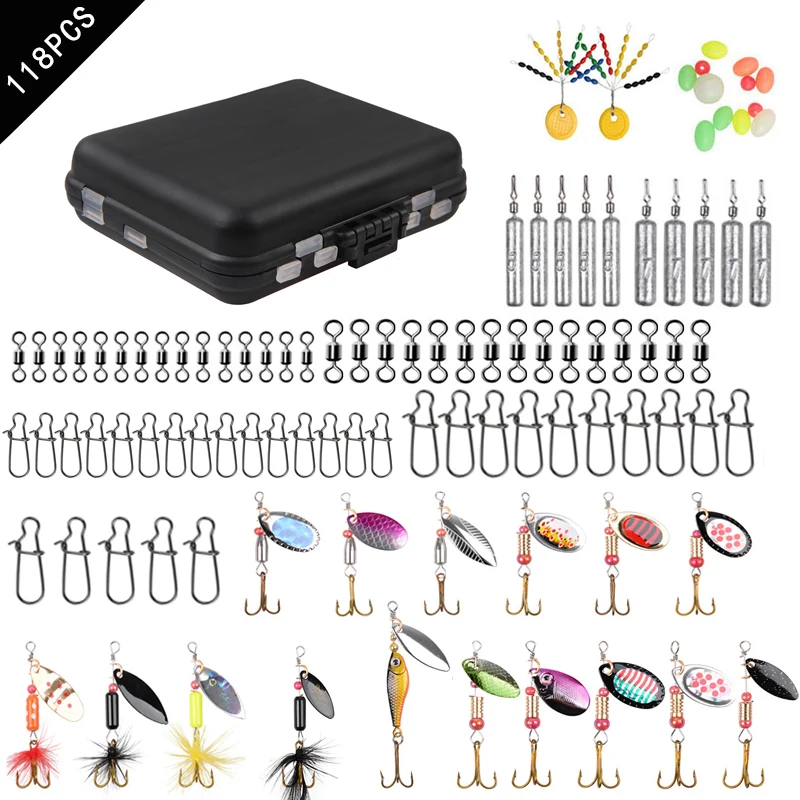 Cantidad: 118, Material: Gancho de acero de alto carbono, plástico, metal Peso del cebo cuchara: 3G-12,5G Paquete: Caja de pesca negra Color: mezcla de colores Característica: Diferentes tipos de señuelos de metal, más opciones Anticorrosión, se puede utilizar para agua salada y agua dulce Principal utilizado para señuelo Pike Trout Bass Spoon Paquete de caja de plástico, fácil de llevar Nota: Puede haber algunos errores de medición, no se preocupe. Gracias
