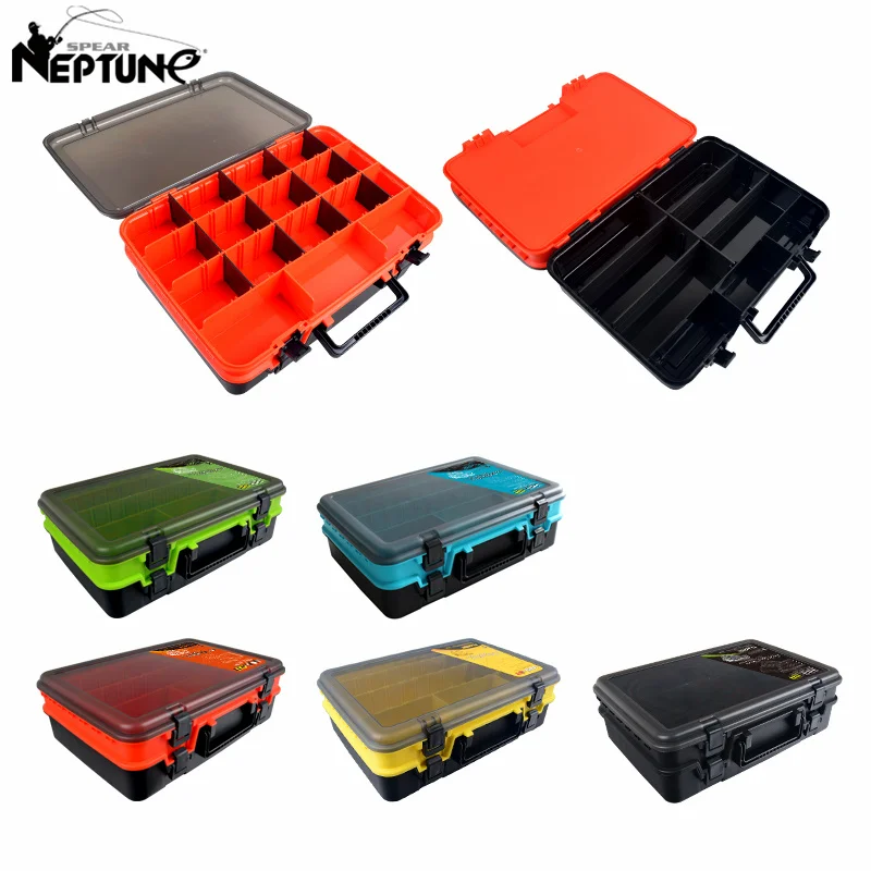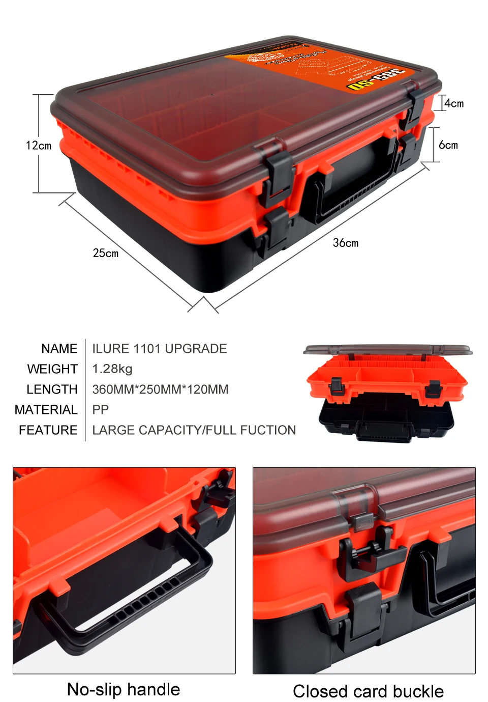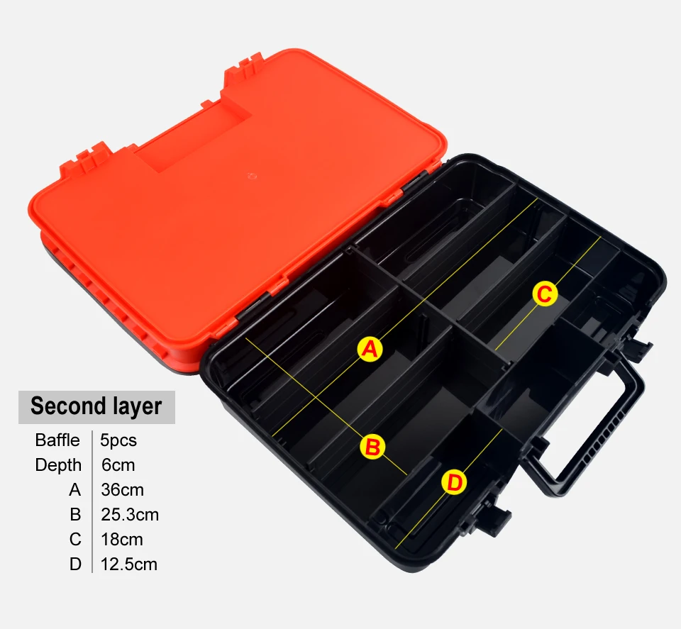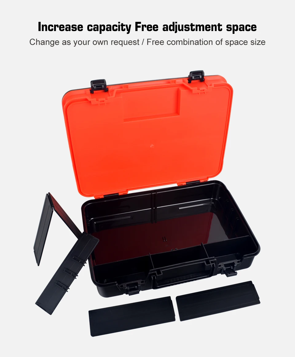 Caja de aparejos de pesca de doble capa, organizador de almacenamiento de plástico para señuelos, estuche de herramientas de gancho, caja de accesorios marinos