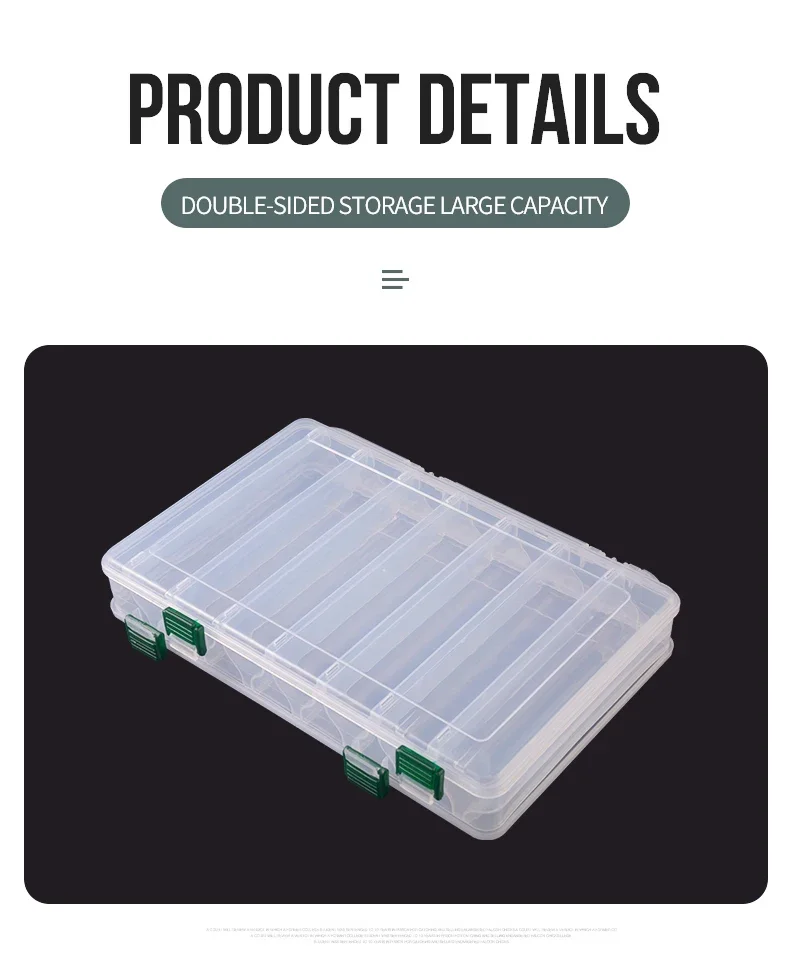 Caja de aparejos de pesca de doble cara con 14/10 compartimentos para señuelos de pesca en el mar, accesorios de gancho para cebo, caja de almacenamiento de espacio extragrande