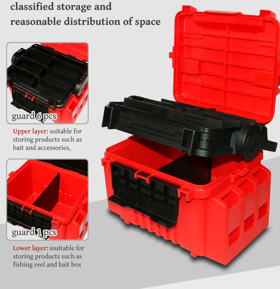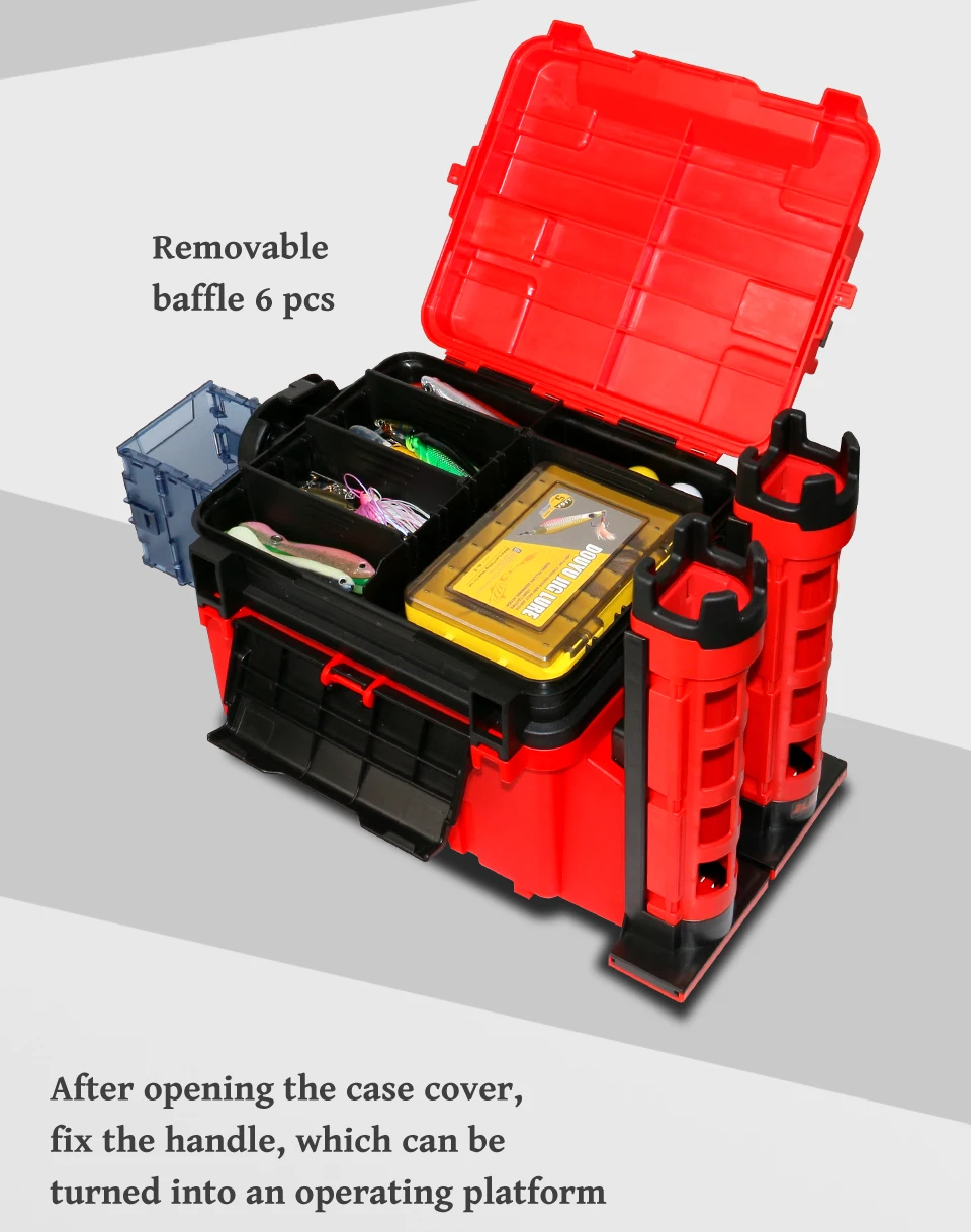 La caja de pesca puede almacenar varios suministros de pesca. Colocar cañas de pescar, sedales, cebos, anzuelos, etc. en una caja de pesca puede hacer que la pesca sea más conveniente. Además, la caja de pesca también puede evitar que su equipo de pesca se disperse o se pierda, haciendo que su viaje de pesca sea más perfecto.