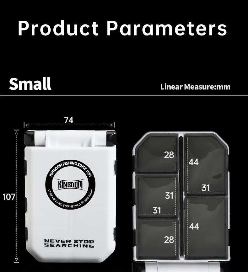 KINGDOM Caja de aparejos de pesca Mini estuche de almacenamiento Cuchara de pesca Gancho Caja de almacenamiento de cebo Caja de aparejos de pesca voladora Accesorios de pesca