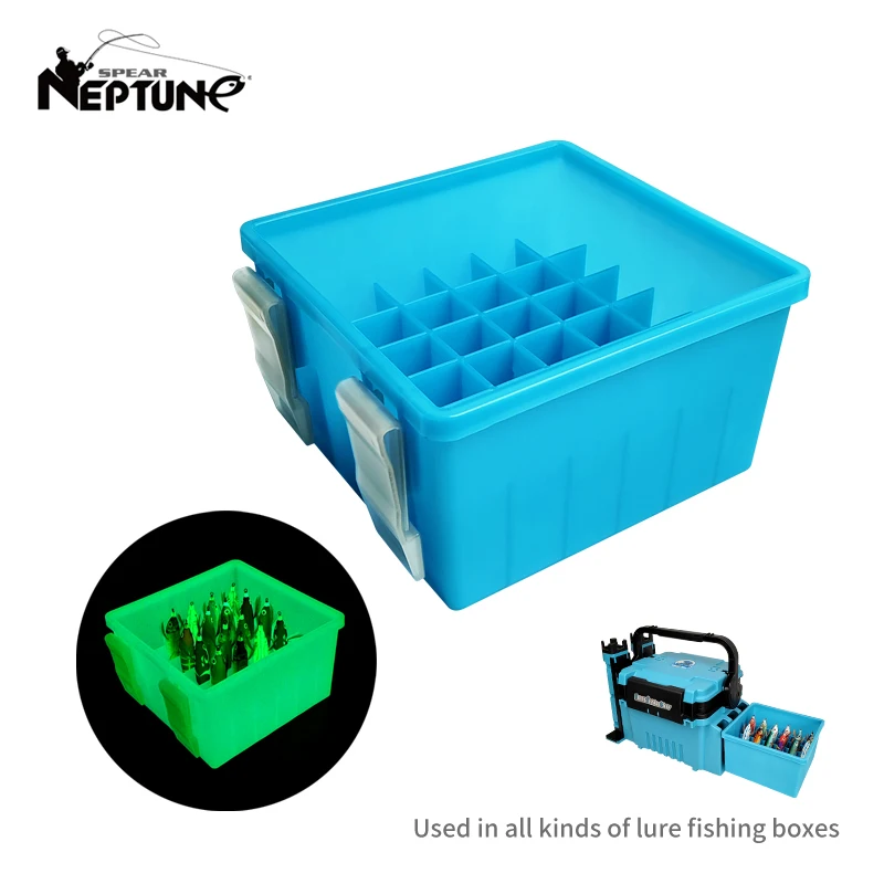 Caja de aparejos de pesca de mar luminosa de plástico, caja de almacenamiento de señuelos duros, organizador de pulpo, plantilla de calamar, contenedor de cebo, 36 rejillas