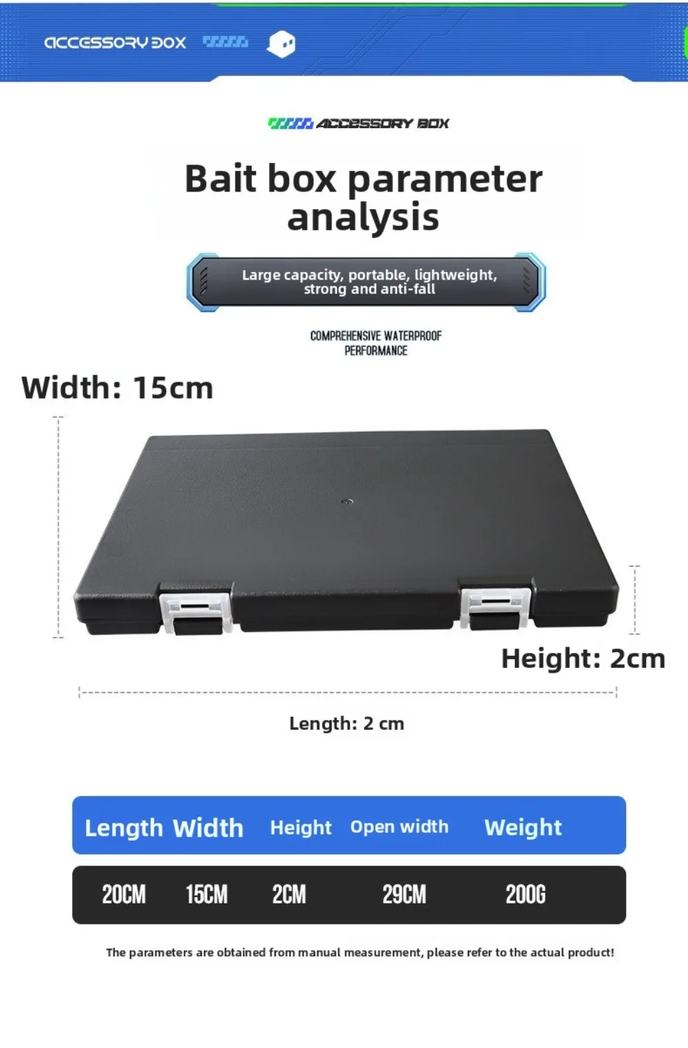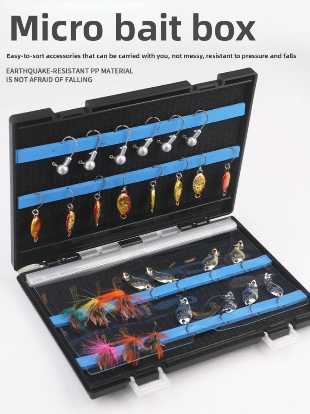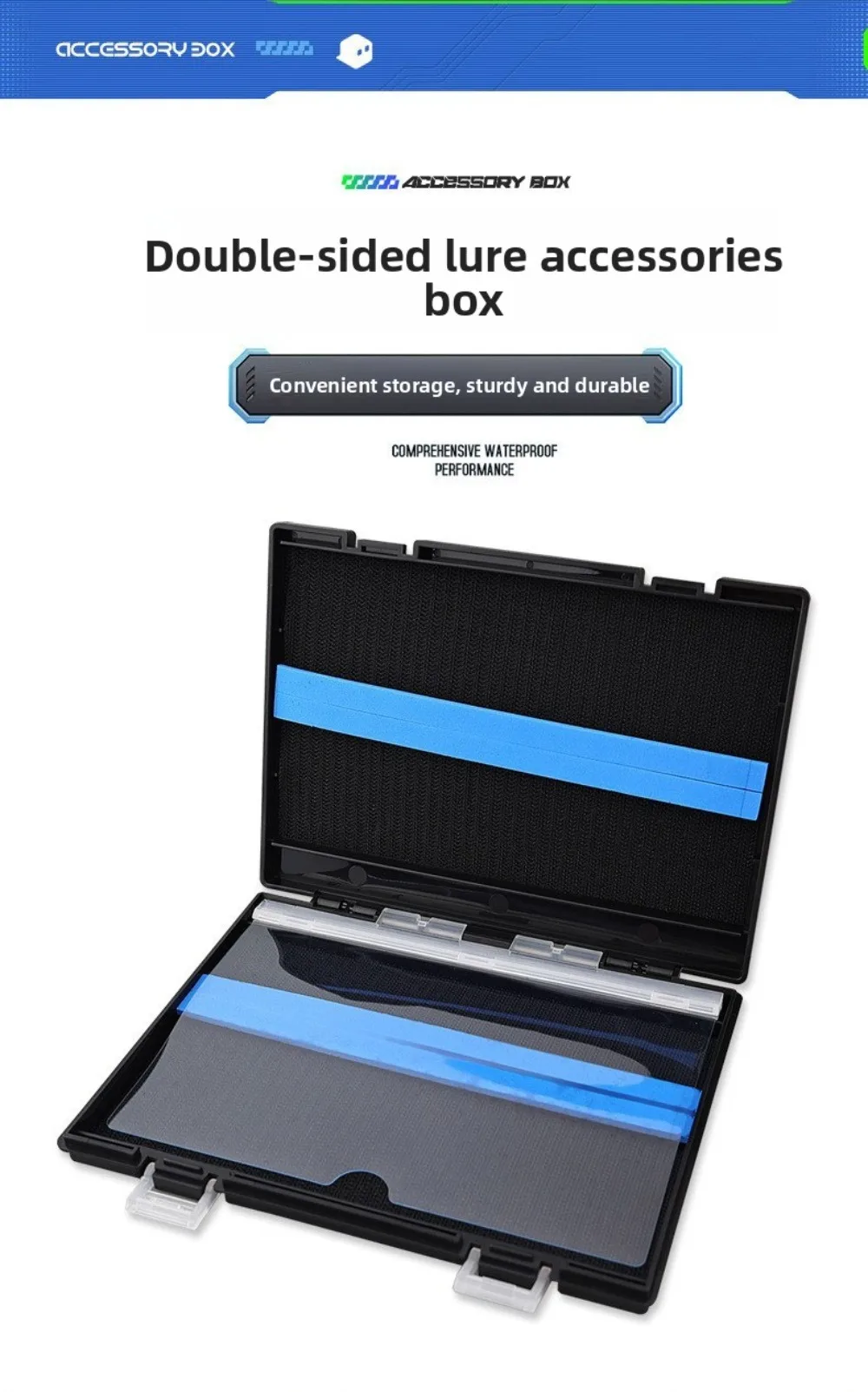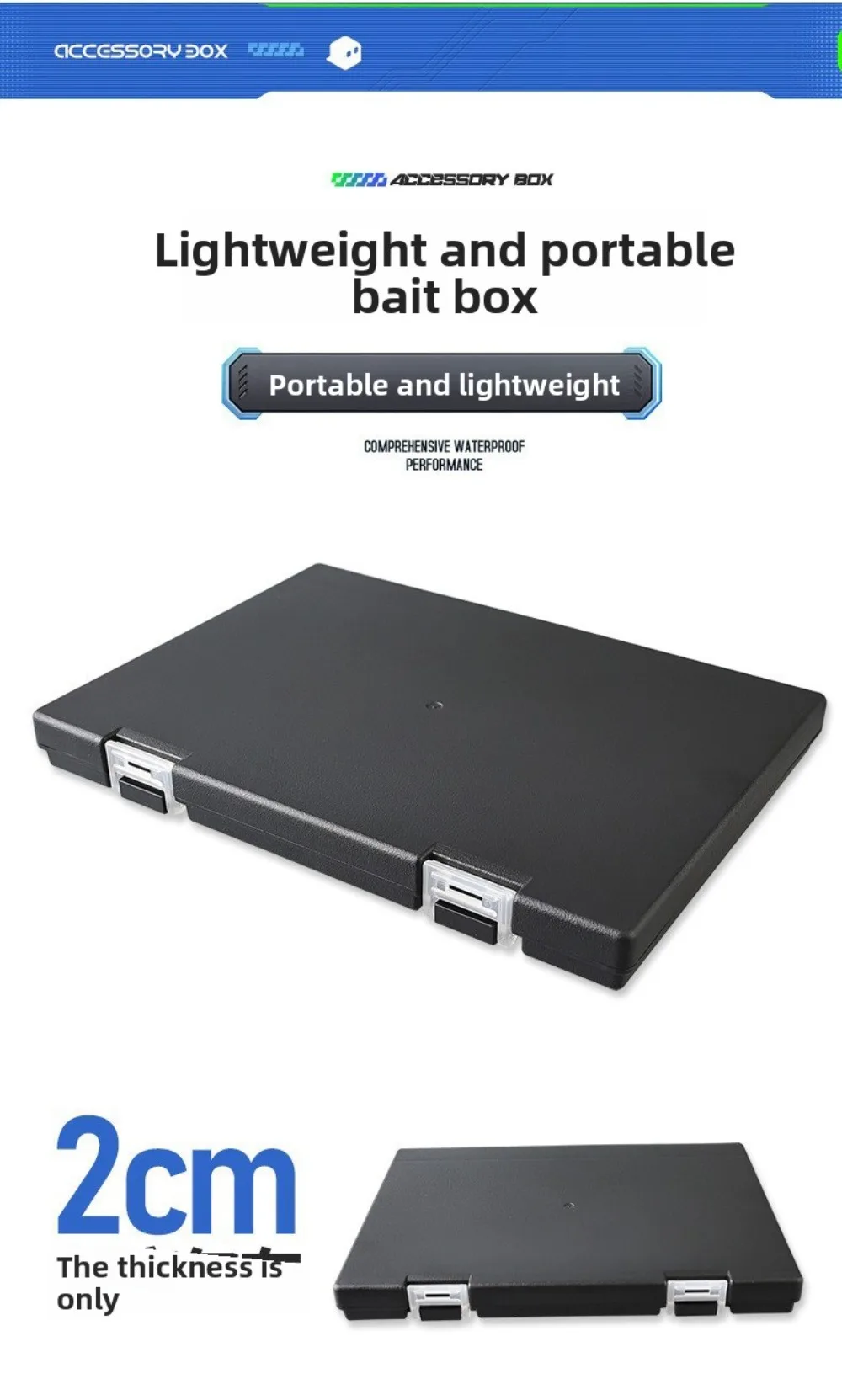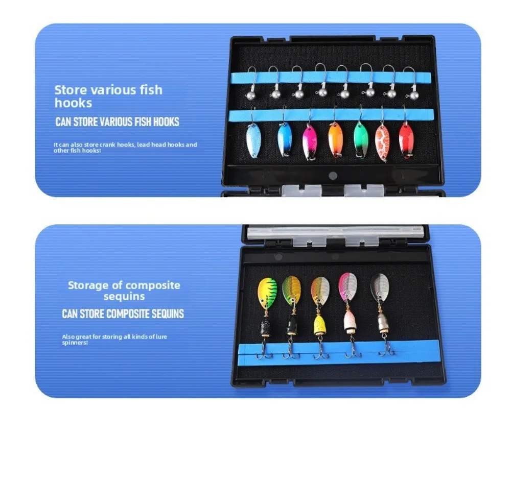 5.Sealed and Sturdy Construction: The fishing lure box is designed with a waterproof seal and sturdy materials. Its moderate thickness, equivalent to a notebook, ensures portability while offering durability during your fishing trips.