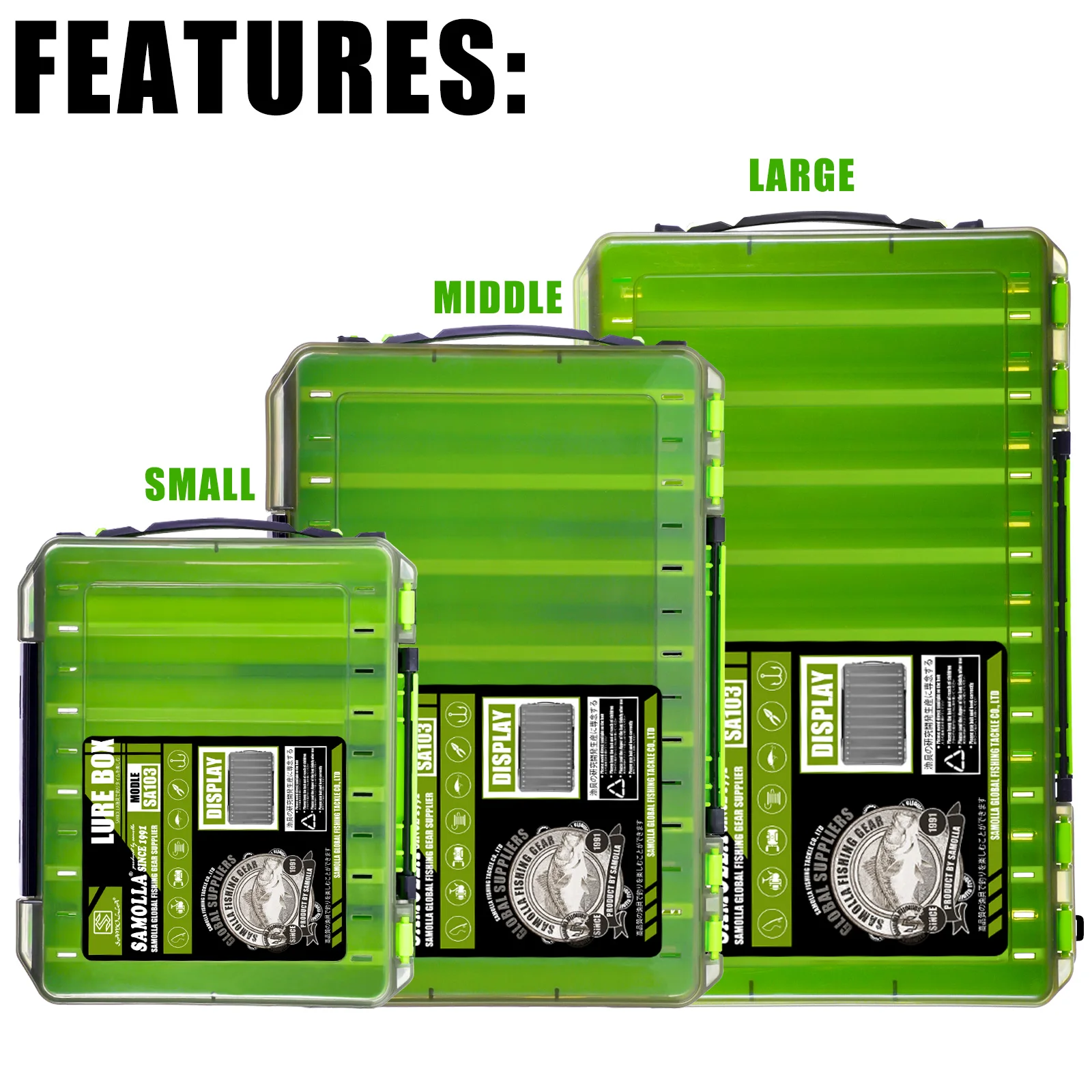 Caja de cebos de señuelo de doble cara, compartimentos grandes de pesca, accesorios de plástico, contenedor de aparejos de almacenamiento, organizador ajustable