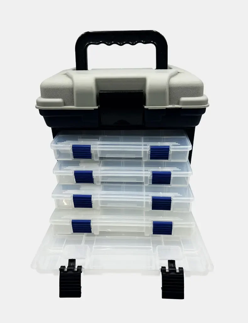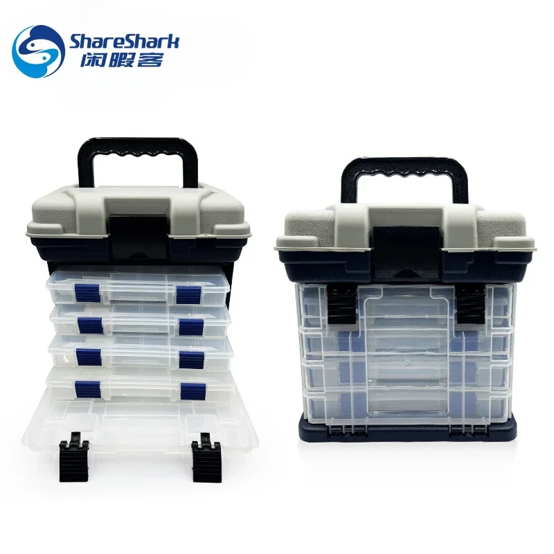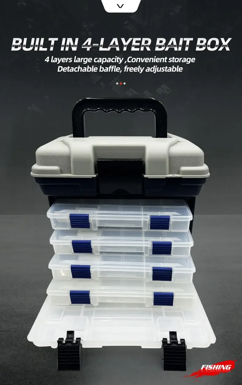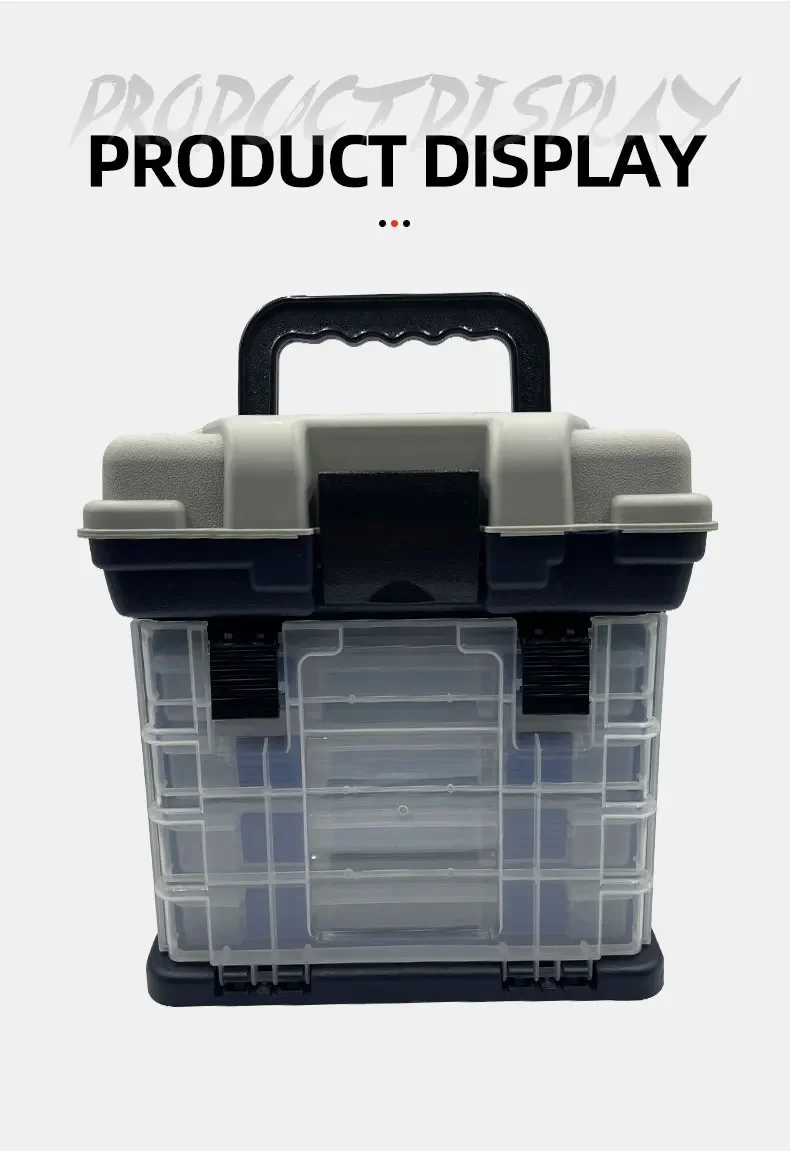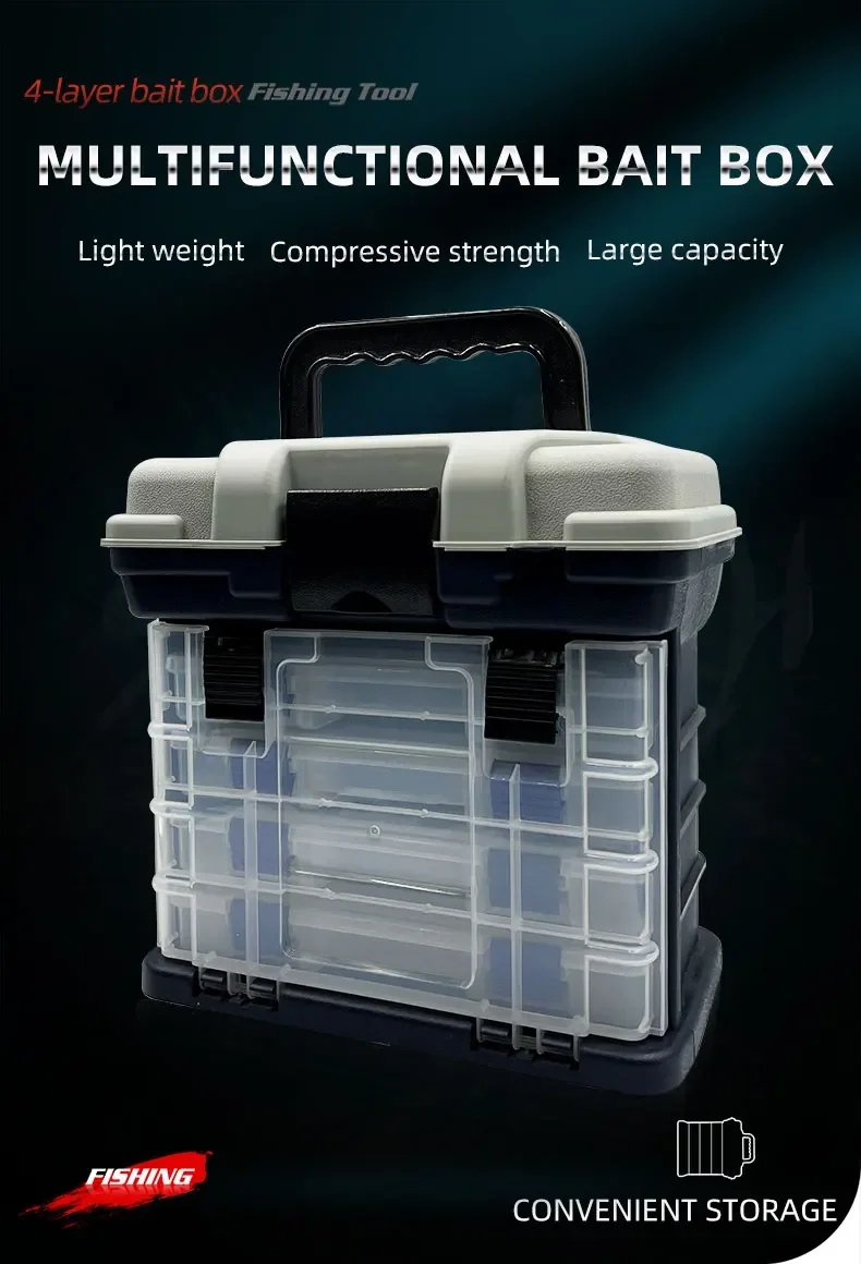 Caja de equipo de pesca portátil 4 capas pesca gran capacidad con divisores ajustables mango aparejos de pesca caja de almacenamiento
