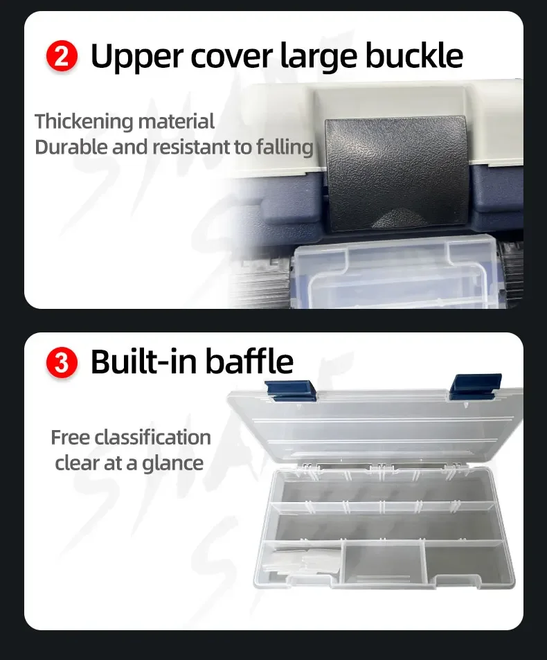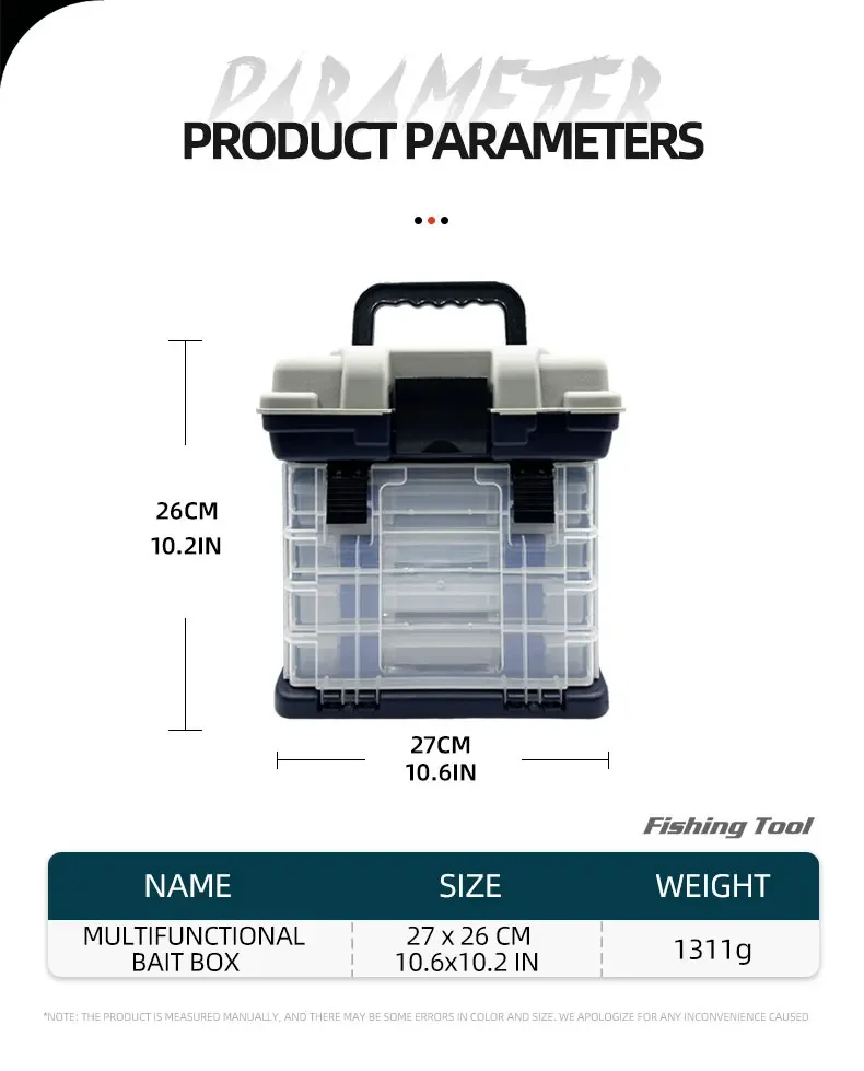 【Material de alta calidad】【Diseño íntimo】【Tamaño de la caja de aparejos de pesca】Tamaño de la caja transparente: 23*11,5 3,5 cm/9,1*4,5*1.4in, CAJA: 26*26*18cm/10,2*10,2*7.0in, múltiples compartimentos le proporcionan suficiente espacio para almacenar equipos 【Ayuda a organizar las piezas】 Diseño de mano portátil, gran capacidad y puede contener 4 cajas de pesca pequeñas para llevar todo tipo de accesorios de pesca, incluidos Señuelos de Pesca, anzuelos, plomadas, flotadores, sedales, etc.