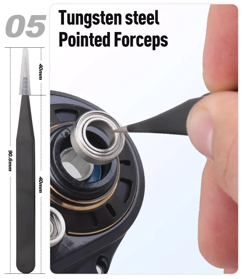 • Herramienta de mantenimiento multifuncional:Esta caja de herramientas de mantenimiento de carrete de aparejos de pesca es un kit completo, que proporciona todos los accesorios necesarios para la reparación y el mantenimiento. Es perfecto para la pesca en barcos oceánicos, asegurando que su equipo esté en las mejores condiciones.