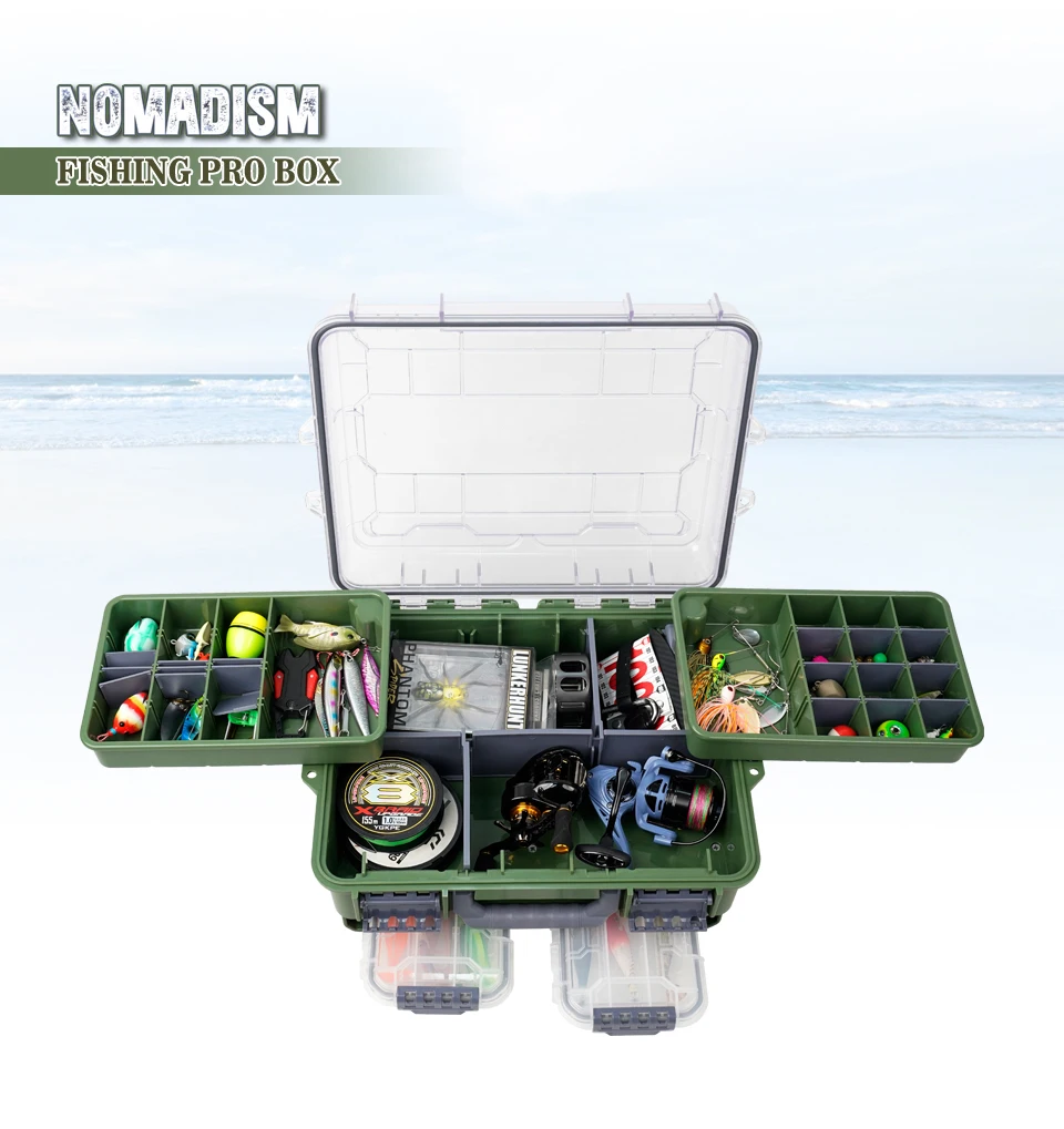 Caja de herramientas de pesca multifunción, aparejos impermeables, cajas organizadoras de almacenamiento de plástico, accesorios para señuelos, equipo de carpa