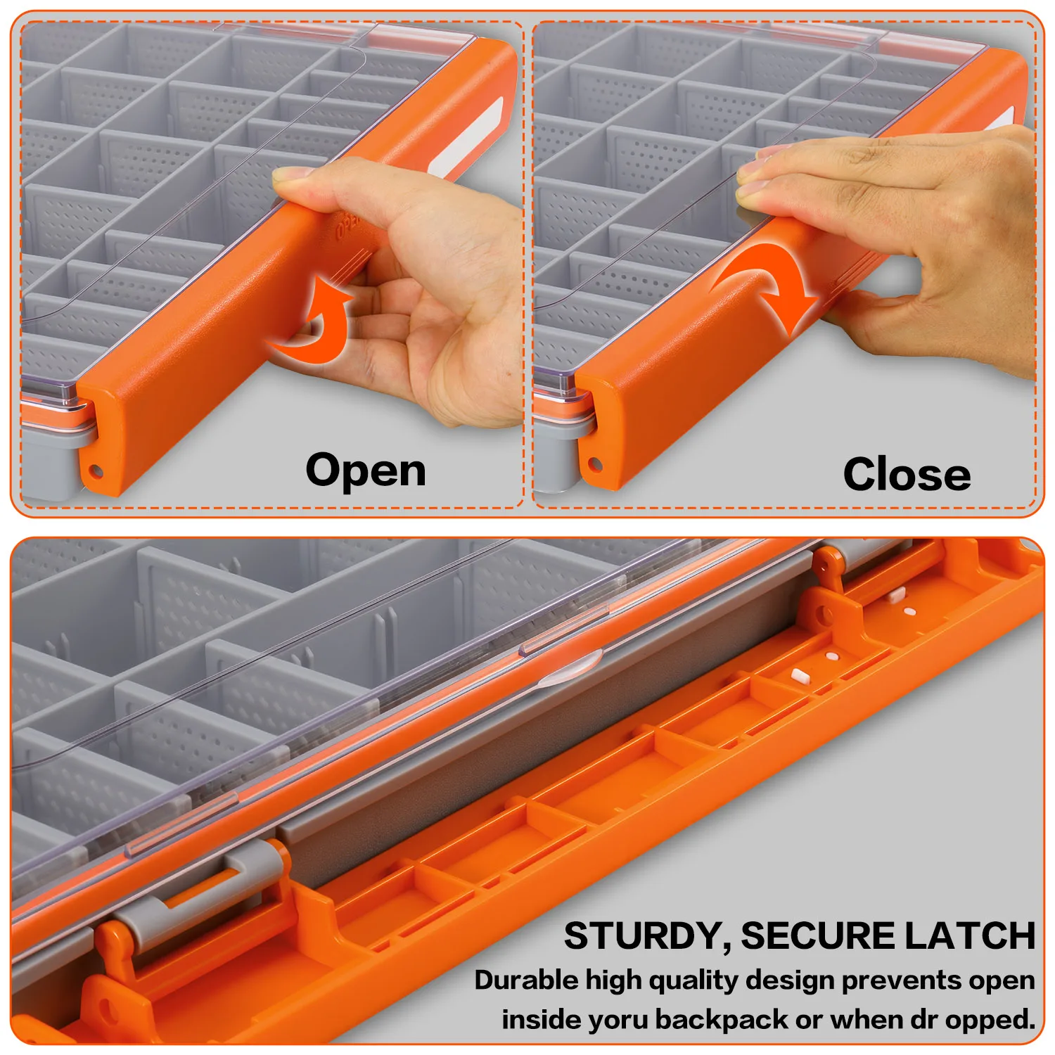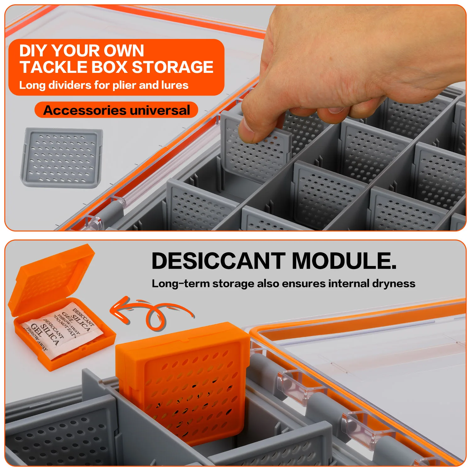 Un interior bien organizado con amplios compartimentos mantiene los señuelos, cebos y aparejos terminales ordenados y de fácil acceso.
