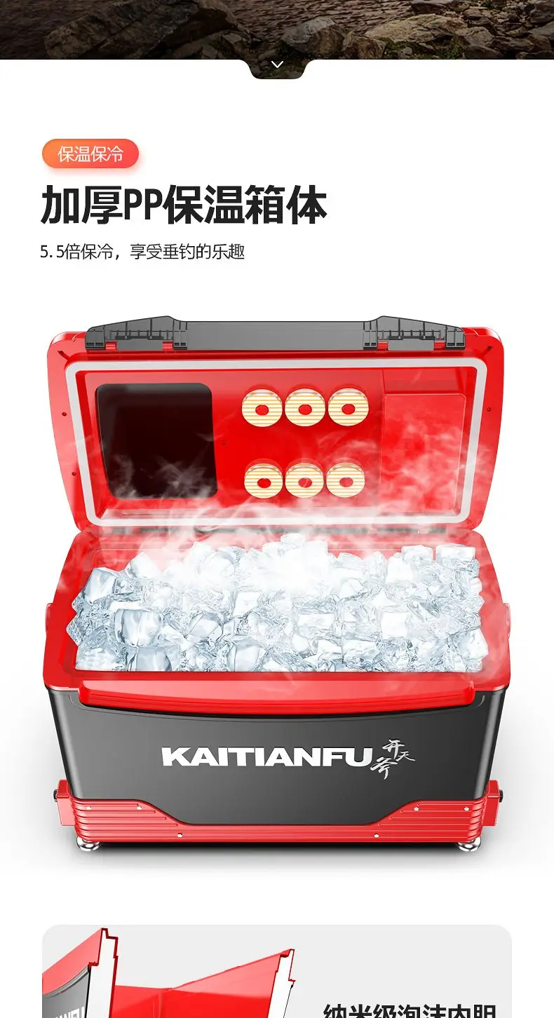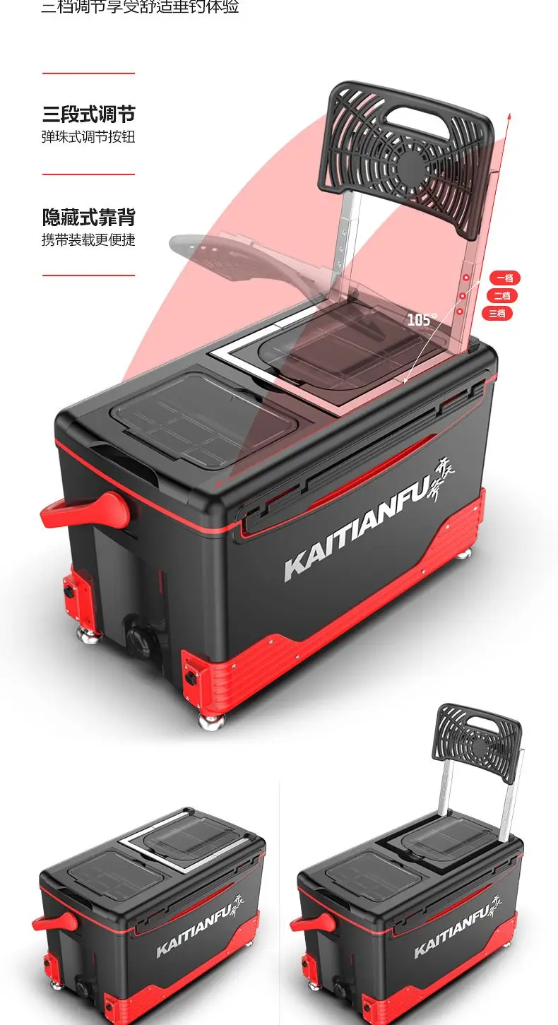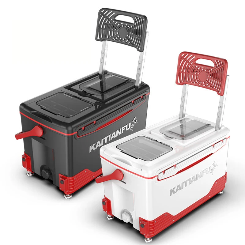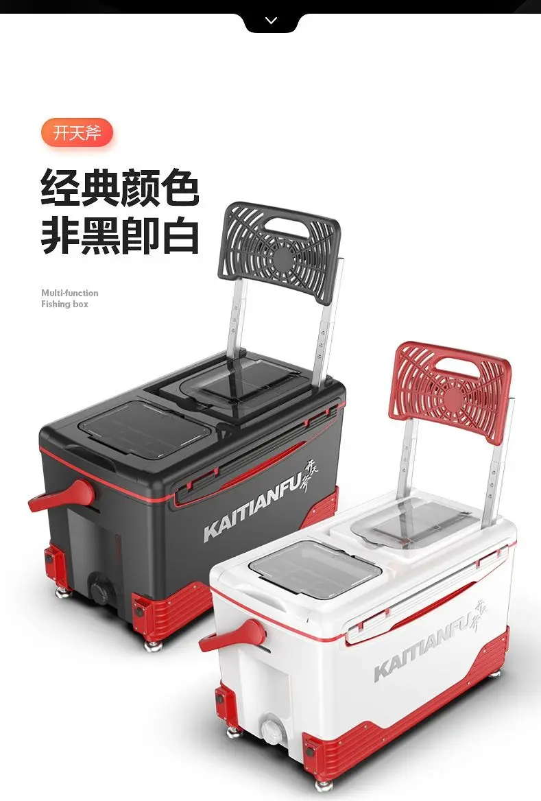 Caja de hielo de pesca multifuncional para exteriores, juego completo de almacenamiento de aparejos de pesca, cajas de herramientas de taburete, 36L, blanco y negro