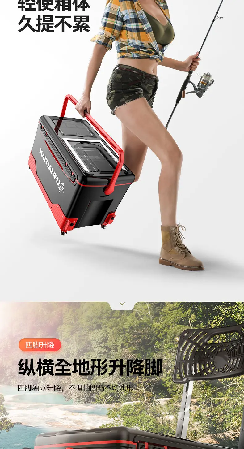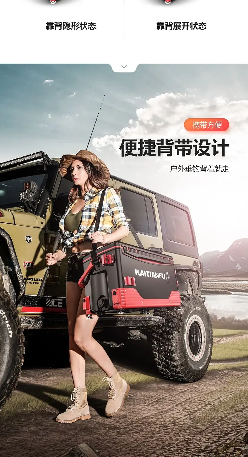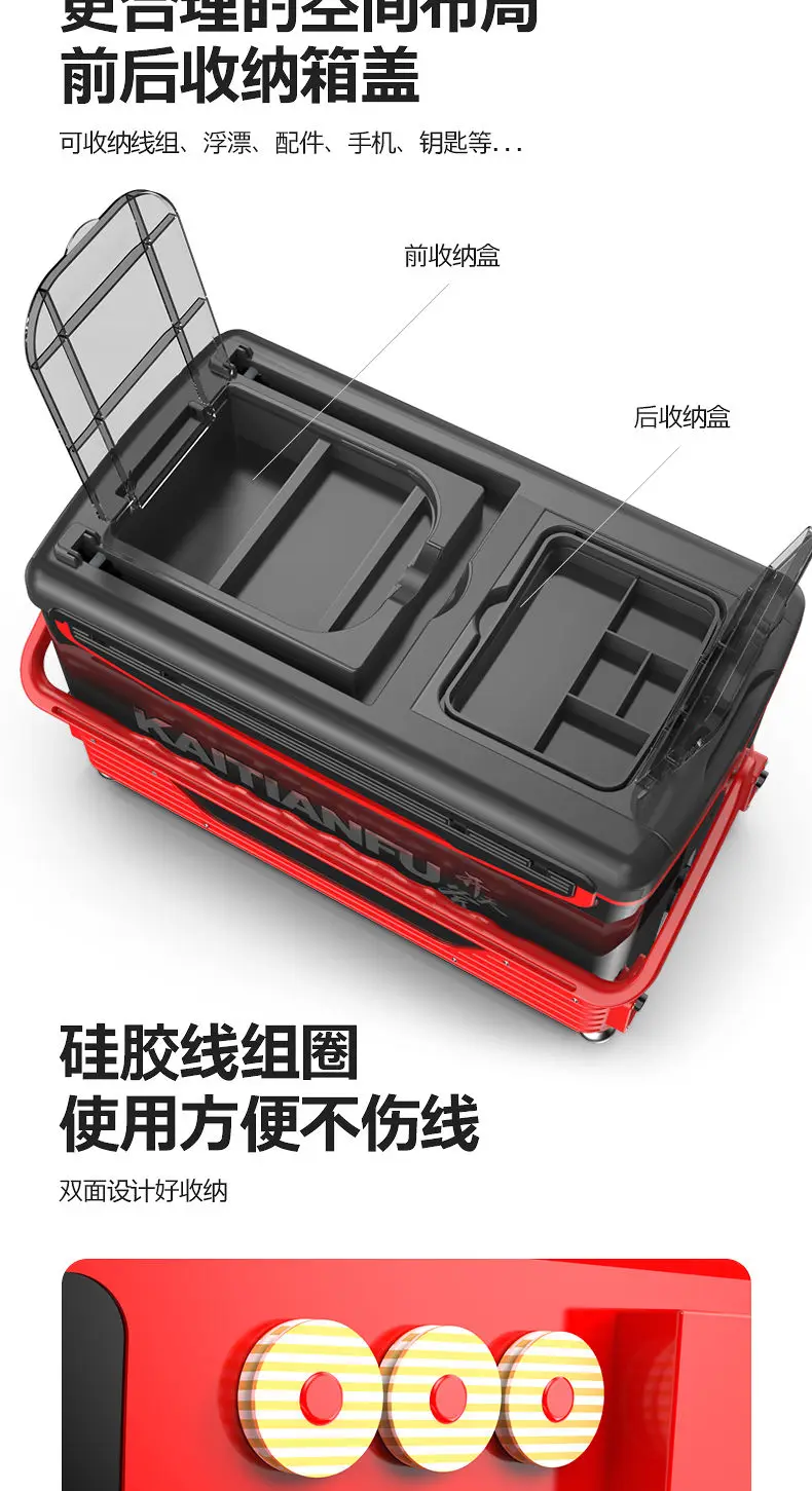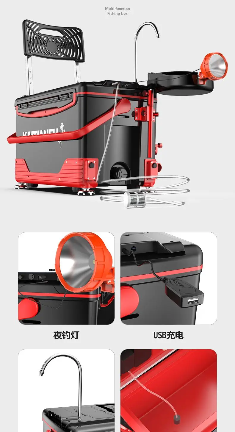 Caja de hielo de pesca multifuncional para exteriores, juego completo de almacenamiento de aparejos de pesca, cajas de herramientas de taburete, 36L, blanco y negro
