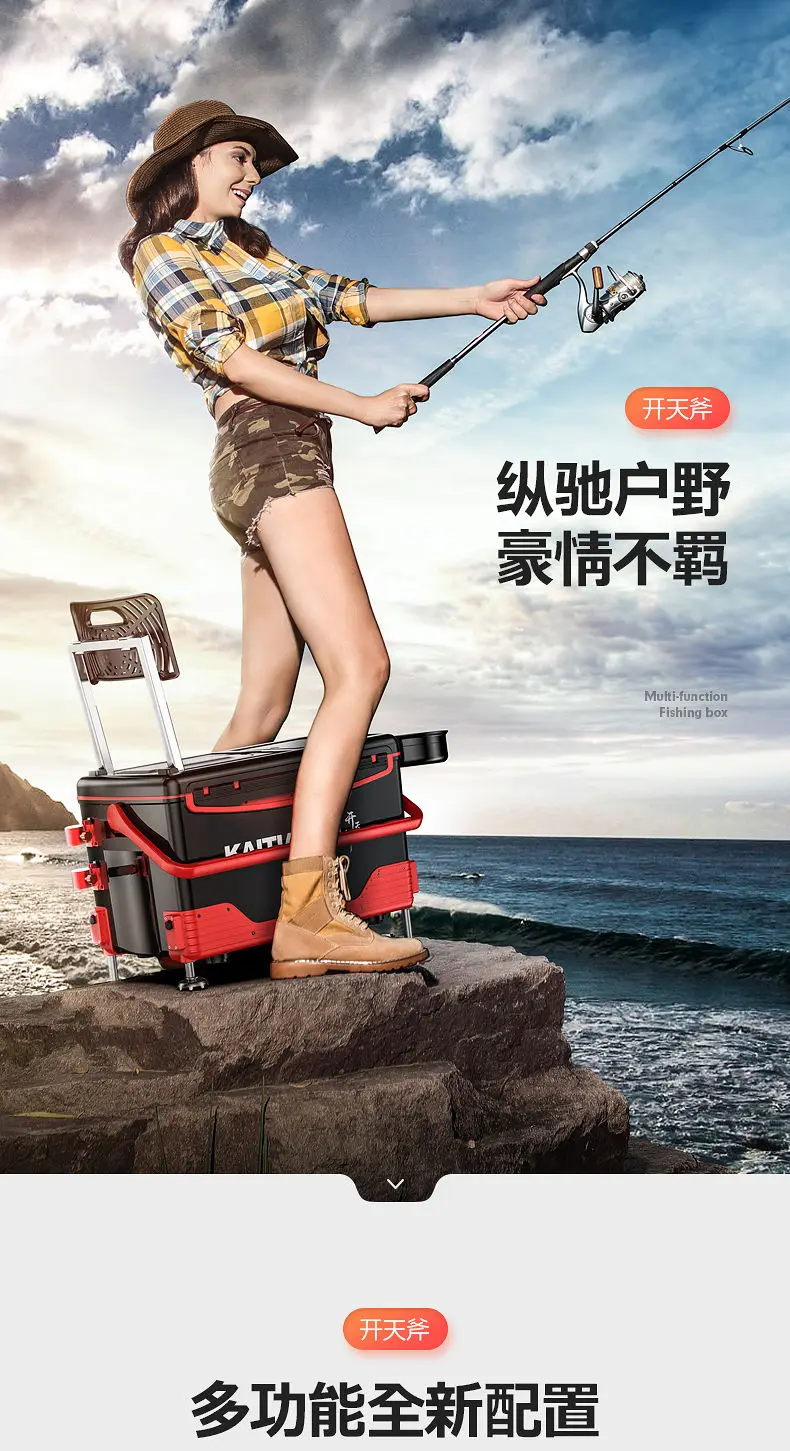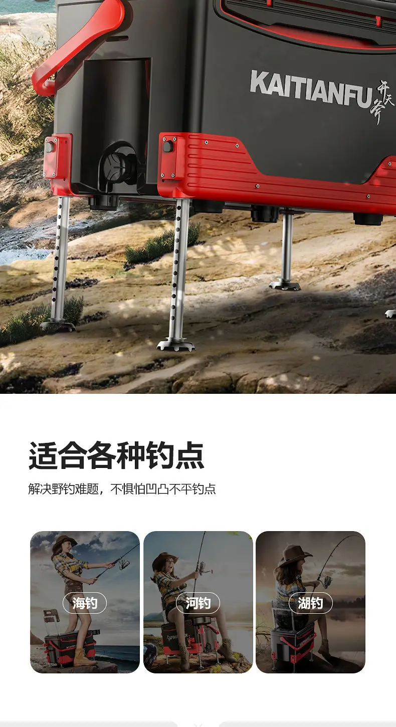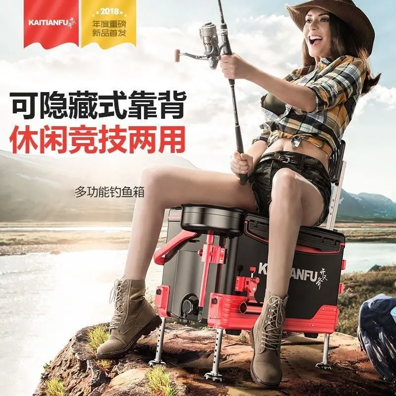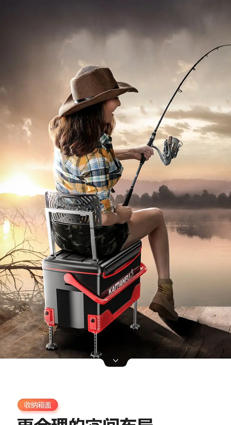 Caja de hielo de pesca multifuncional para exteriores, juego completo de almacenamiento de aparejos de pesca, cajas de herramientas de taburete, 36L, blanco y negro