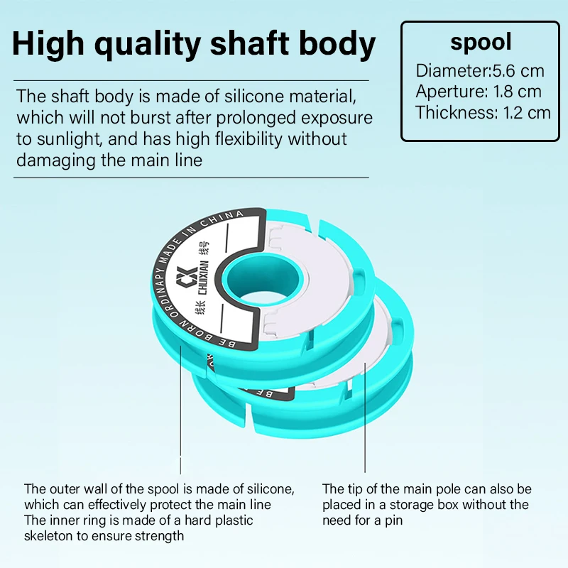 Los carretes de silicona resistentes a los rayos UV evitan que se agrieten a la luz solar y ofrecen una textura suave pero firme ideal para proteger los hilos de pescar contra daños durante el almacenamiento.