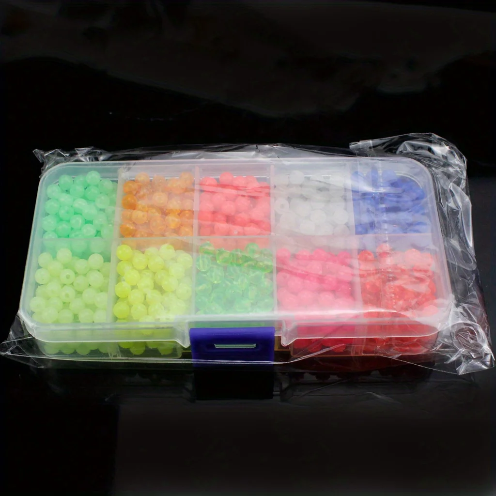 Caja luminosa para frijoles espaciales de pesca, 1000 Uds., bolas flotantes redondas que brillan en la oscuridad, tapón, cuentas de aparejo para aparejos, accesorios de señuelo