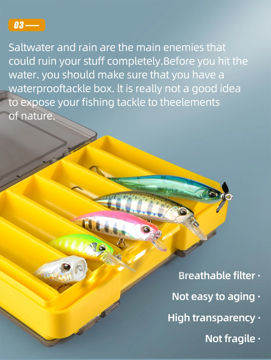 Quick identification-the transparent but durable material allows you to see the contents of the bait box without opening and opening the lid, so you can quickly and easily find and replace the bait immediately.