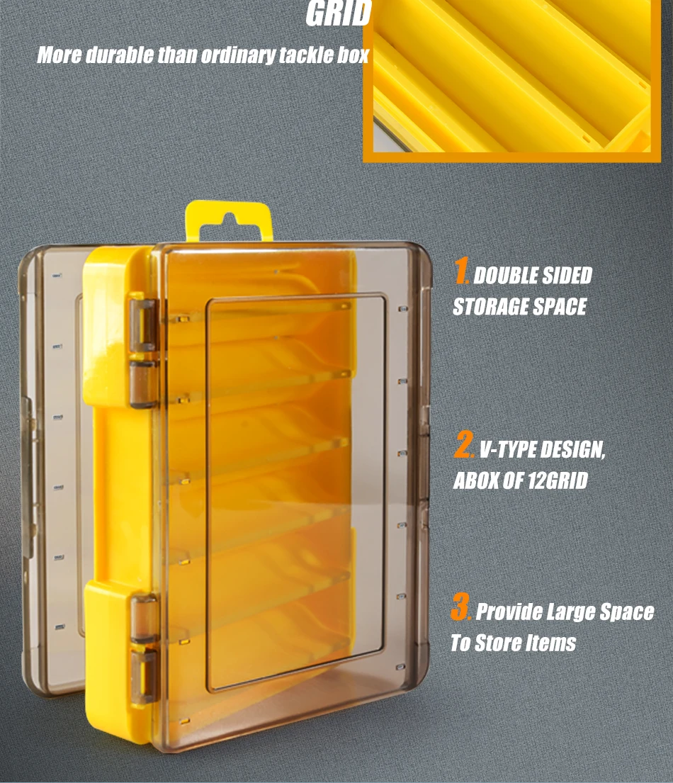 Fishing Box 12 Compartments Fishing Accessories Lure Hook Boxes Storage Double Sided High Strength Fishing Tackle Box