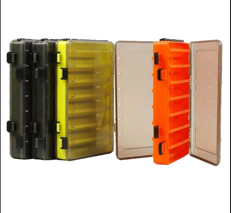 Caja de pesca con 14 compartimentos, accesorios de pesca, cajas de almacenamiento de anzuelos de doble cara, alta resistencia, X145G
