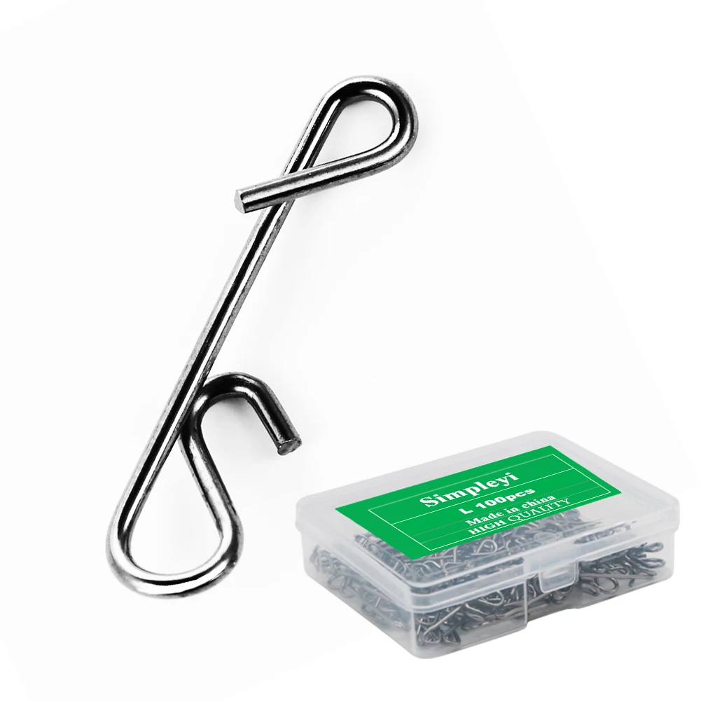 100 Uds pesca línea de alambre de acero inoxidable conector de pesca barril accesorios de conexión giratoria Snap Pin aparejos herramienta señuelo Kit mercancías para la pescaCaracterísticas: