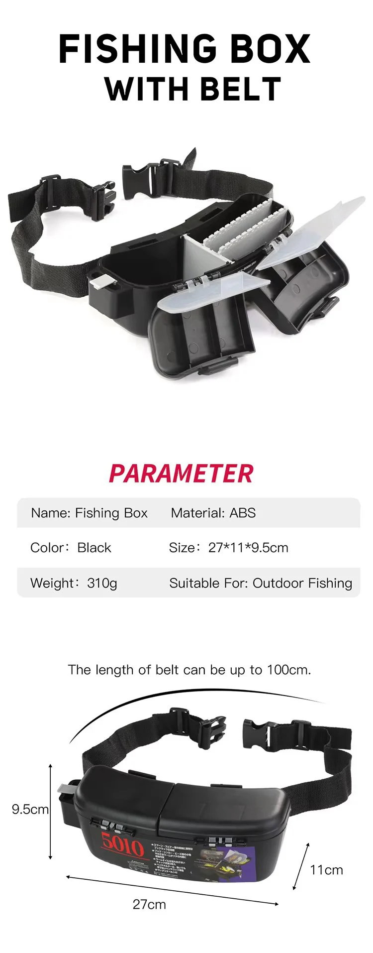 WEIHE Caja de pesca de cintura con cinturón para actividades de pesca al aire libre