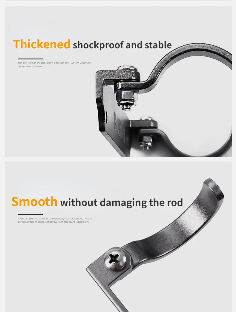 menos 1 * porque pedí 2 rojos y recibí 2 azules .... Muy ligero, me sirve para colocar la caña cuando no estoy pescando. Aprecio los 2 tornillos de acero inoxidable que se incluyen. 👍