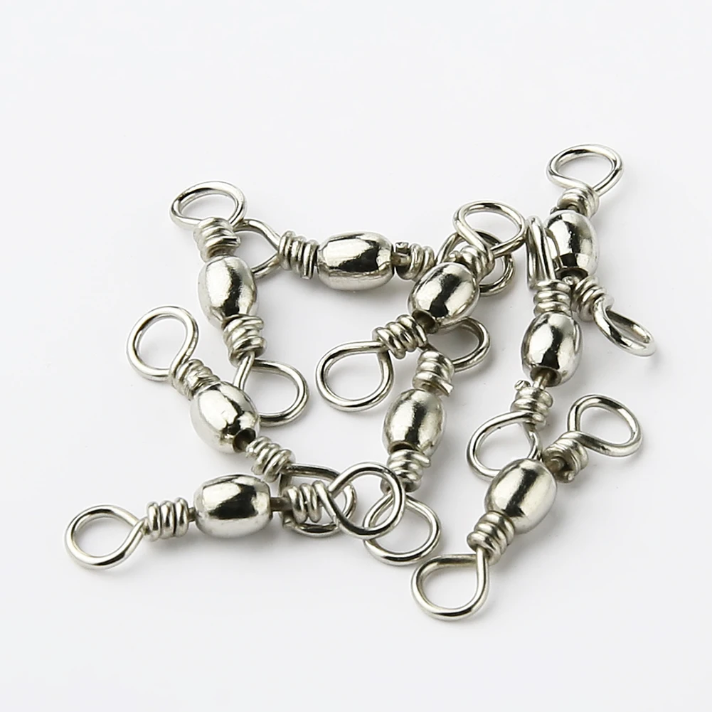 100 Uds barril giratorio de acero inoxidable pesca en el océano aparejo gancho conector Snap accesorios para Señuelos de Pesca carpa mosca herramienta