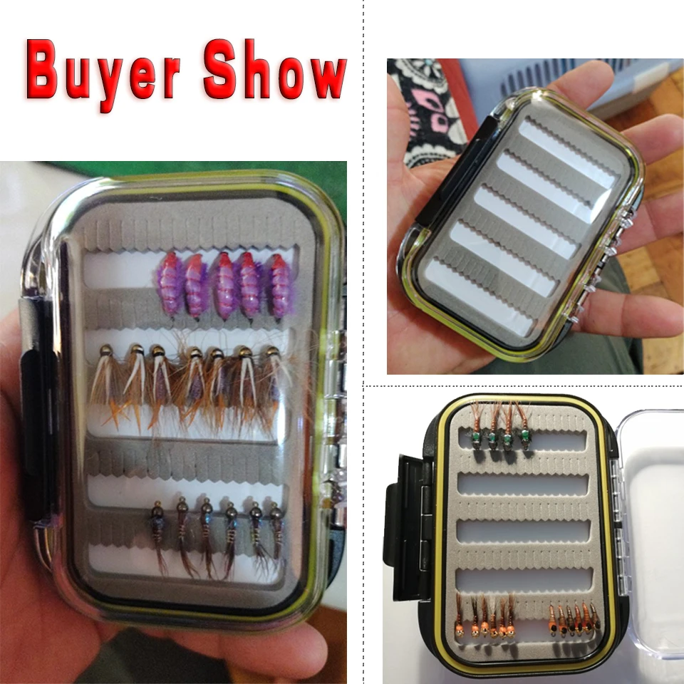 Caja de pesca de Ninfa impermeable de doble capa, tamaño de bolsillo, 10.5X7.0X3.1CM, aparejos de pesca con mosca, 1 unidad