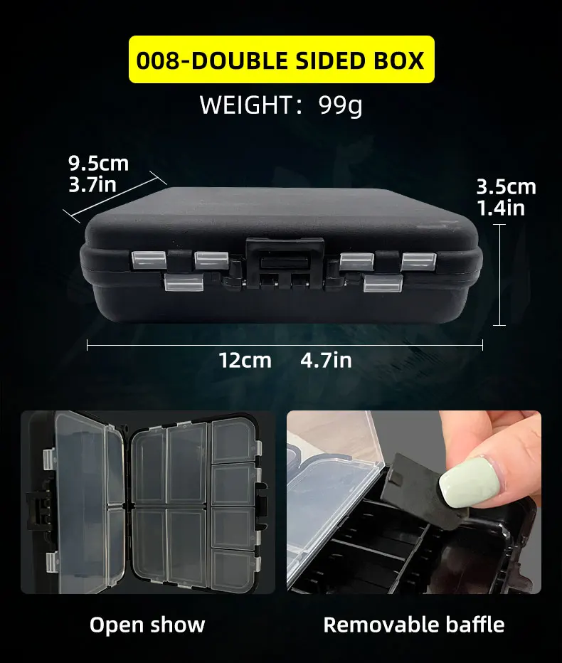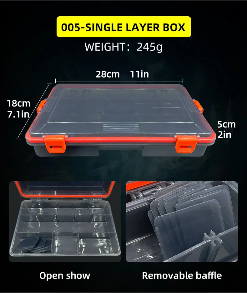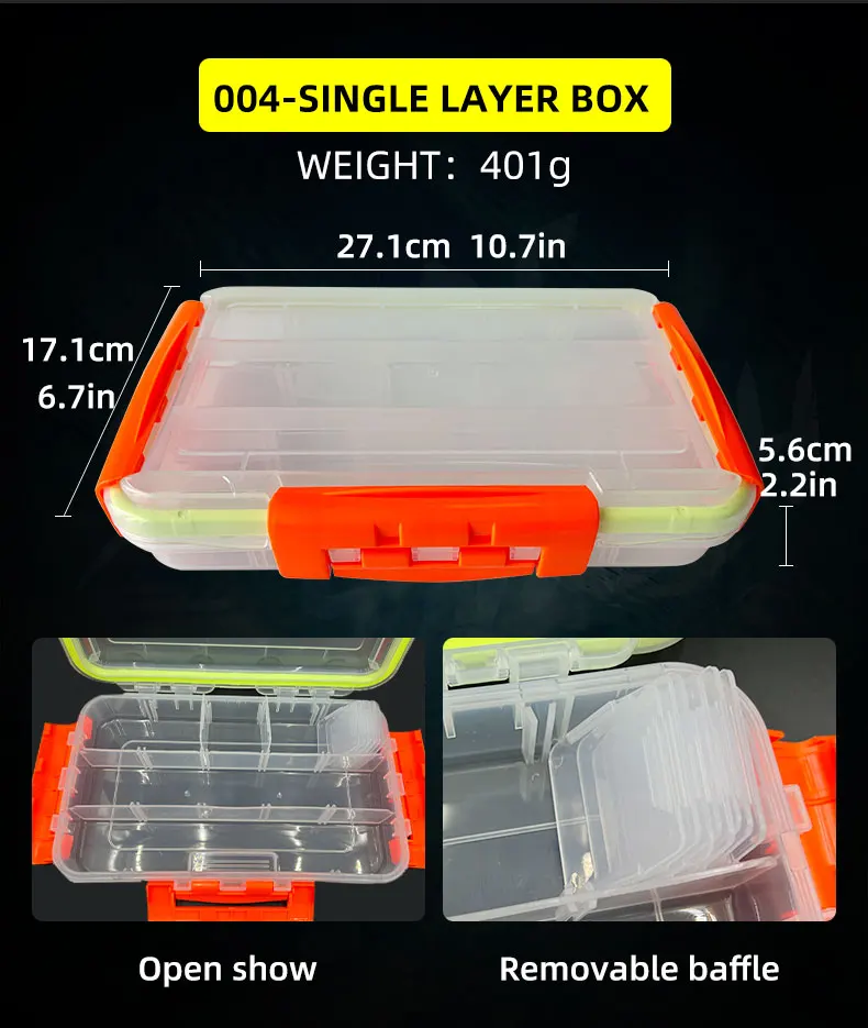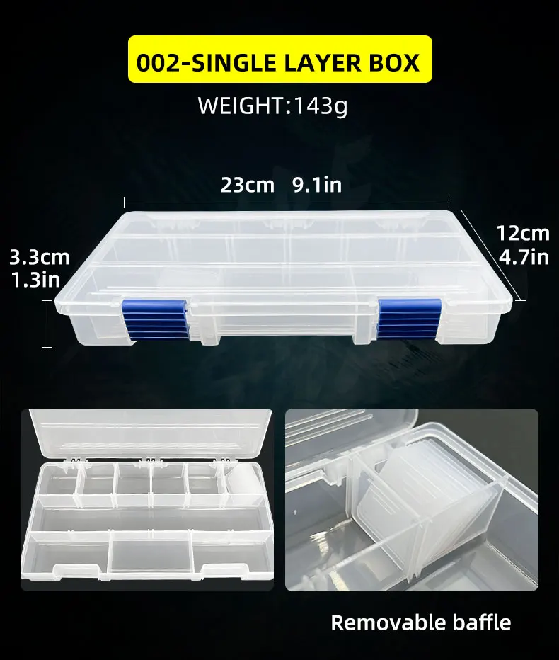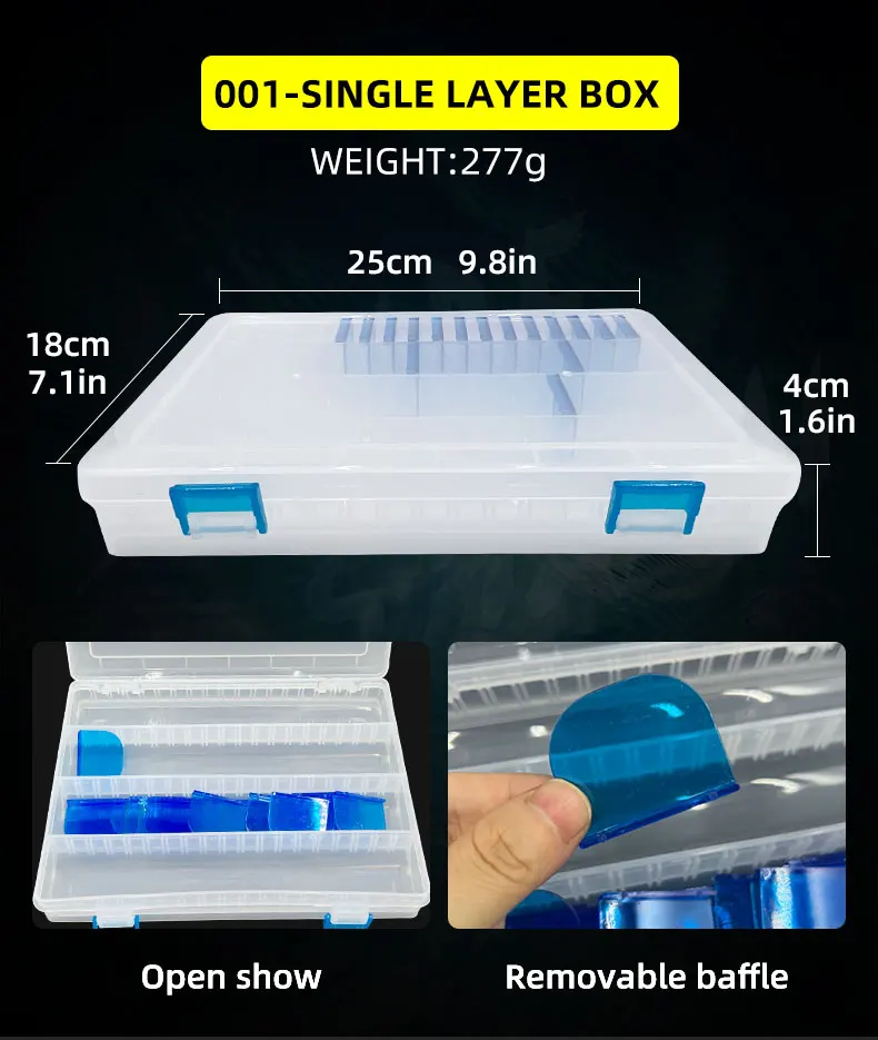 【Pesca tGrilleteCaja con capa separada】:Tablero de partición desmontable, se puede personalizar según diferentes tamaños. El Botón de liberación de un clic facilita la apertura. Simplemente suelte el pestillo y la cubierta del compartimento se abrirá automáticamente, en lugar de abrir o cubrir uno después de su uso.