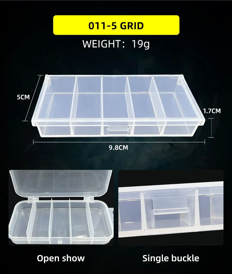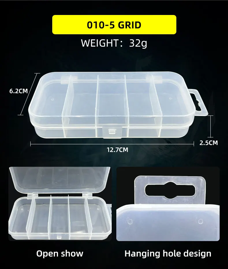 【Pesca tGrilleteCaja de almacenamiento】:Un solo compartimento puede almacenar perfectamente artículos pequeños o equipo de pesca ligero, como anzuelos de pesca, anzuelos de fijación, cebo giratorio, plomos de plomo, deslizadores de flotador, tiro dividido, cuentas, botones giratorios, anillos divididos y cebo.
