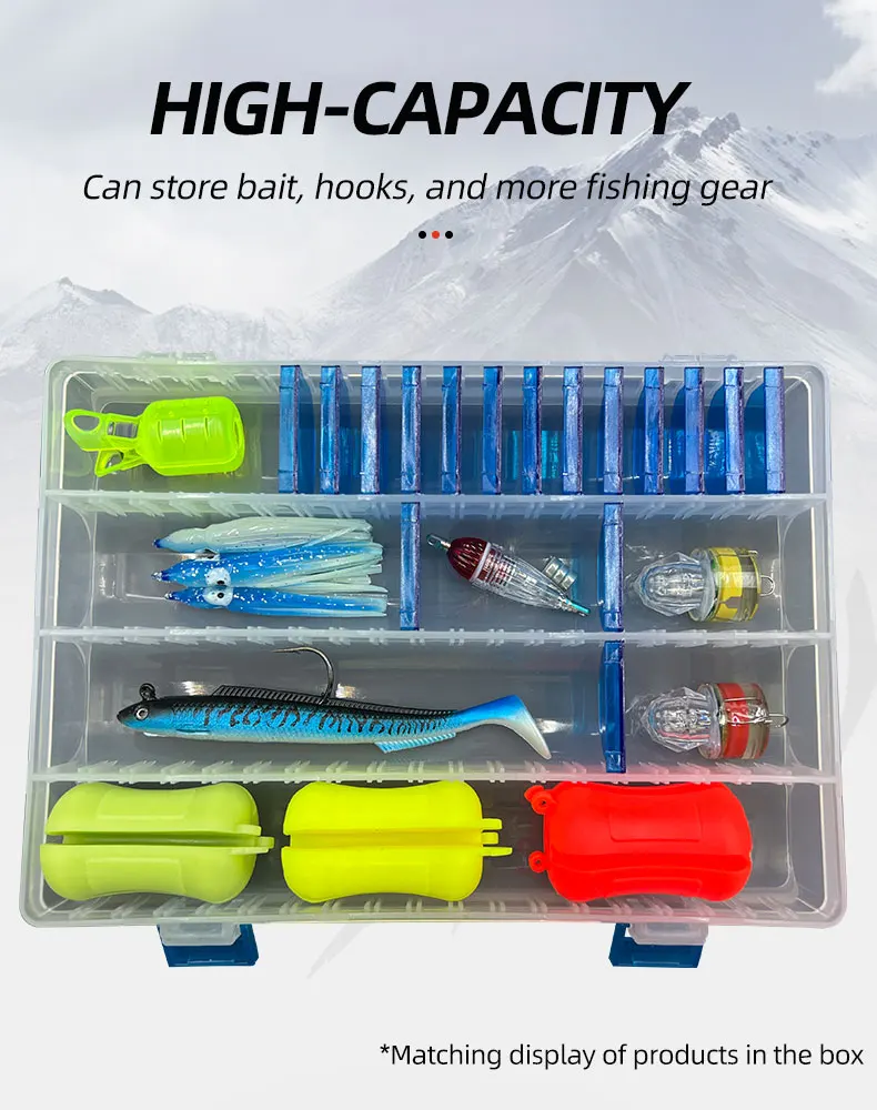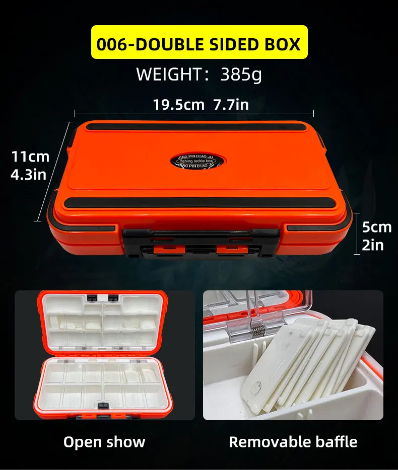 Caja de pesca de plástico de doble cara, caja de equipo de anzuelo de señuelo de pesca impermeable, caja de aparejos de almacenamiento de carpa, pesca