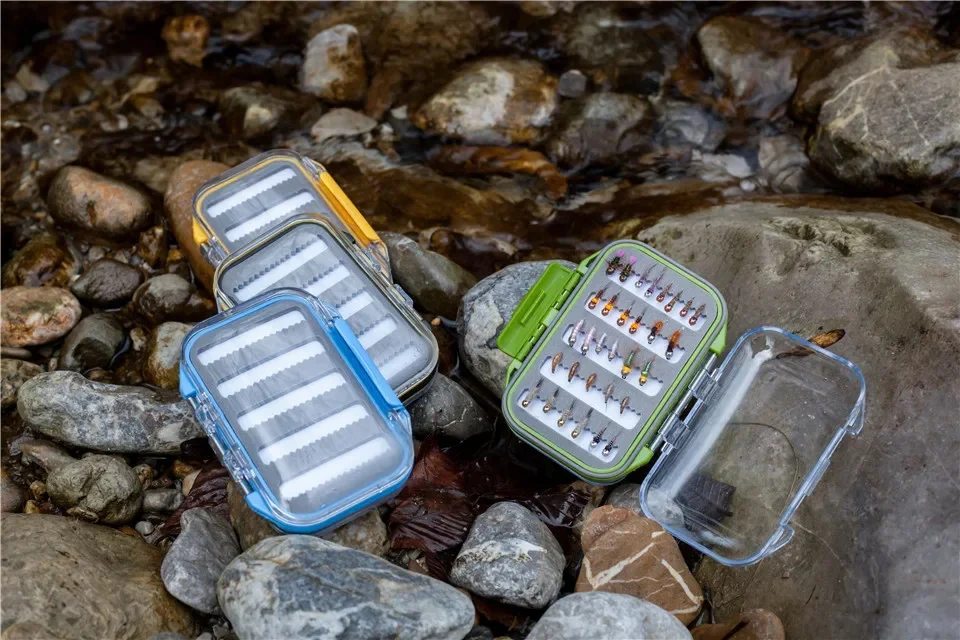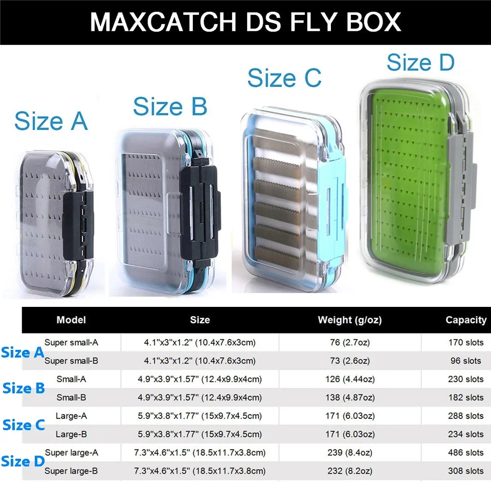 Caja para moscas Maximumcatch, caja impermeable para aparejos de pesca con mosca de 4 tamaños de alta densidad
