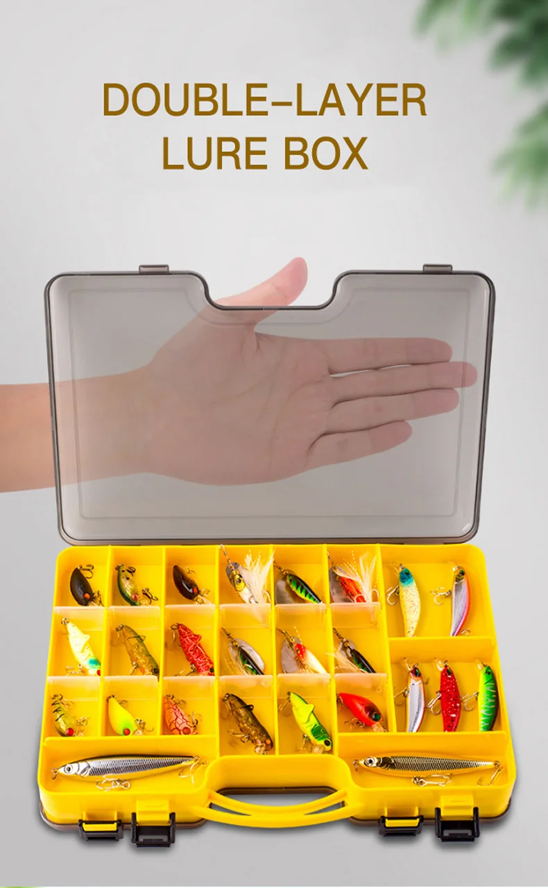 Caja de plástico para Señuelos de Pesca de doble cara, 22 compartimentos, cajas para señuelos de cebo Minnow, accesorios de aparejos de pesca, cajas de almacenamiento X455G