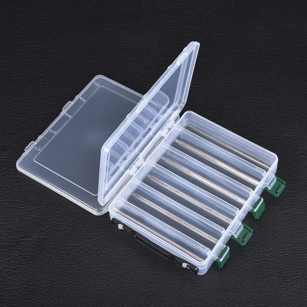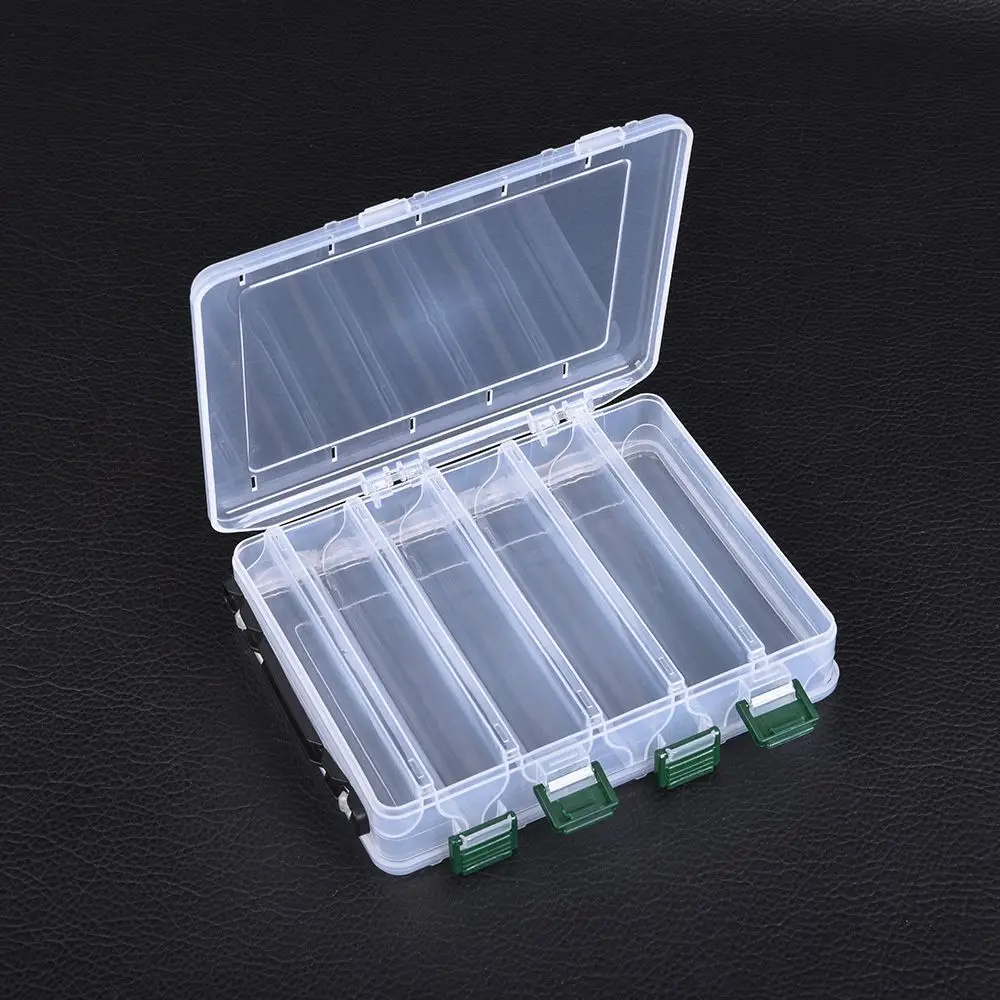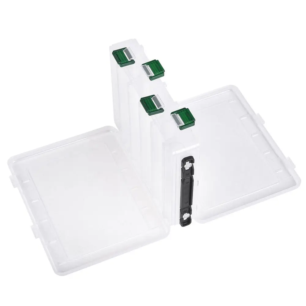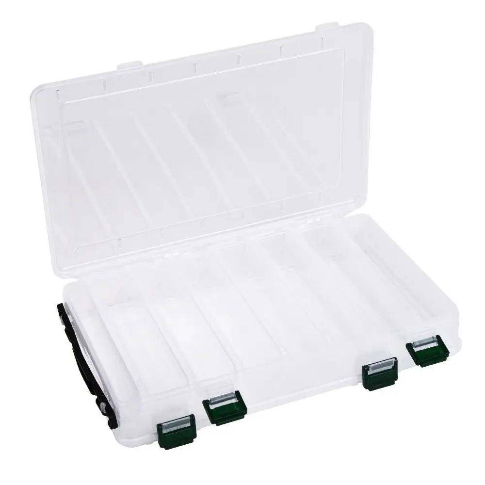 -NO: 27945-10 Marca: LEO Nombre del producto: Caja Lua de doble cara de 10 rejillas (4 botones) Tamaño: 20x17x4.7cm Peso: 252g -NO: 27945-14 Marca: LEO Nombre del producto: Caja Lua de doble cara de 14 rejillas (4 botones) Tamaño: 27x18x4.7cm Peso: 355g Embalaje incluido: 1 caja de almacenamiento de Señuelos de Pesca