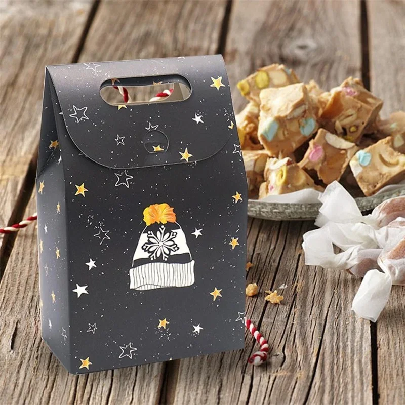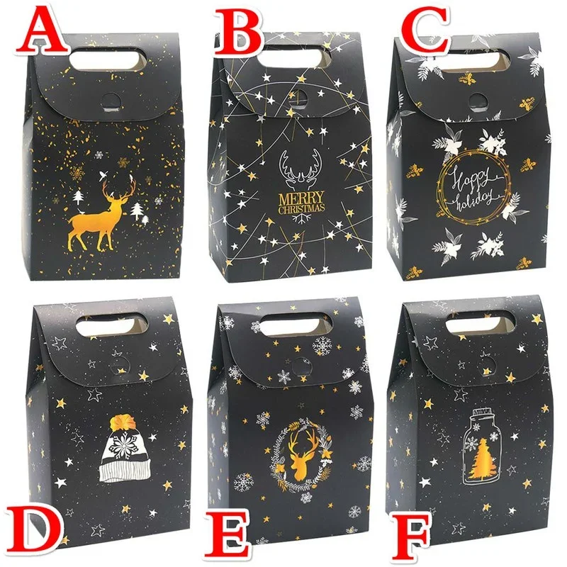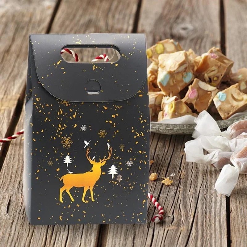 Caja de regalo de Navidad, bolsa de papel de ciervo de cielo nocturno, caja de dulces de galletas de Chocolate, bolsa de regalo de decoración navideña, 5 piezas por juego