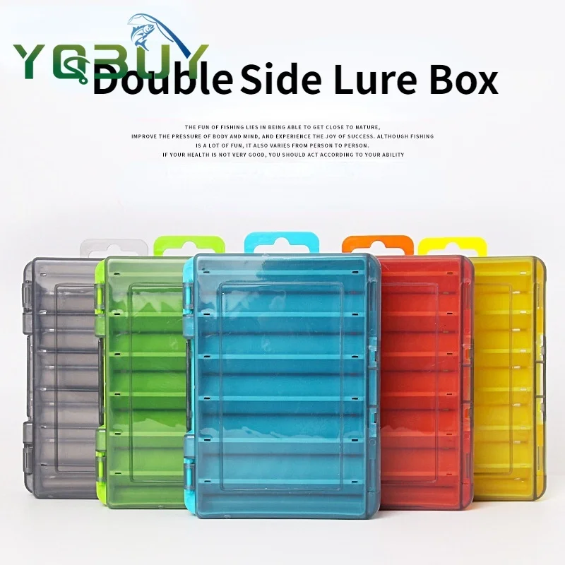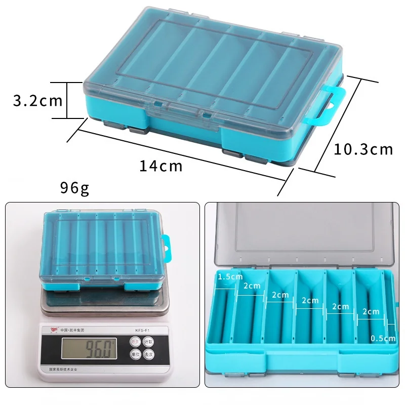 Caja de señuelos de pesca, bandejas de almacenamiento de aparejos de doble cara, caja de plástico Visible impermeable, contenedor de aparejos de pesca