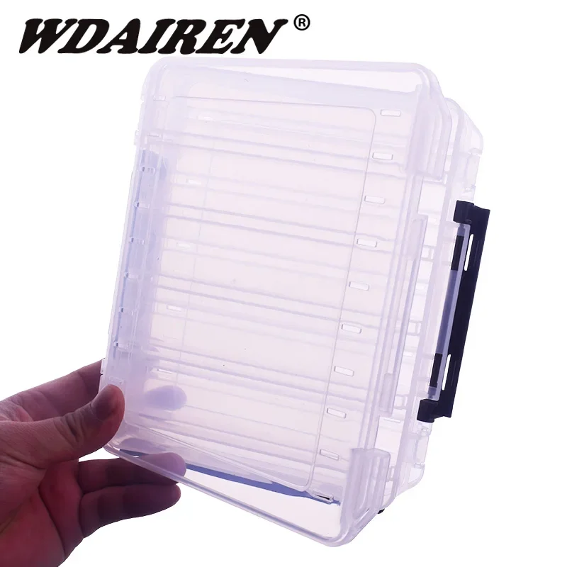Caja de señuelos de pesca de doble cara con 10 compartimentos, con orificio de aire para cebo de camarones, almacenamiento de señuelos duros, caja de aparejos portátil multifunción