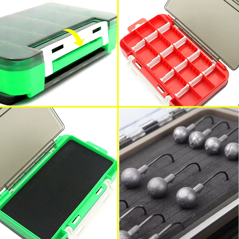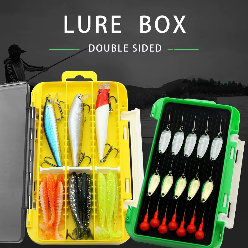 Caja de señuelos de pesca de doble cara, accesorios de gran capacidad, gancho de cabeza de plomo, bandeja de almacenamiento de cebo, cajas organizadoras de cebo