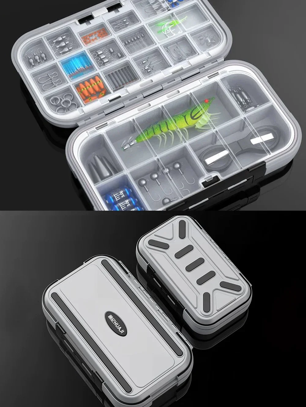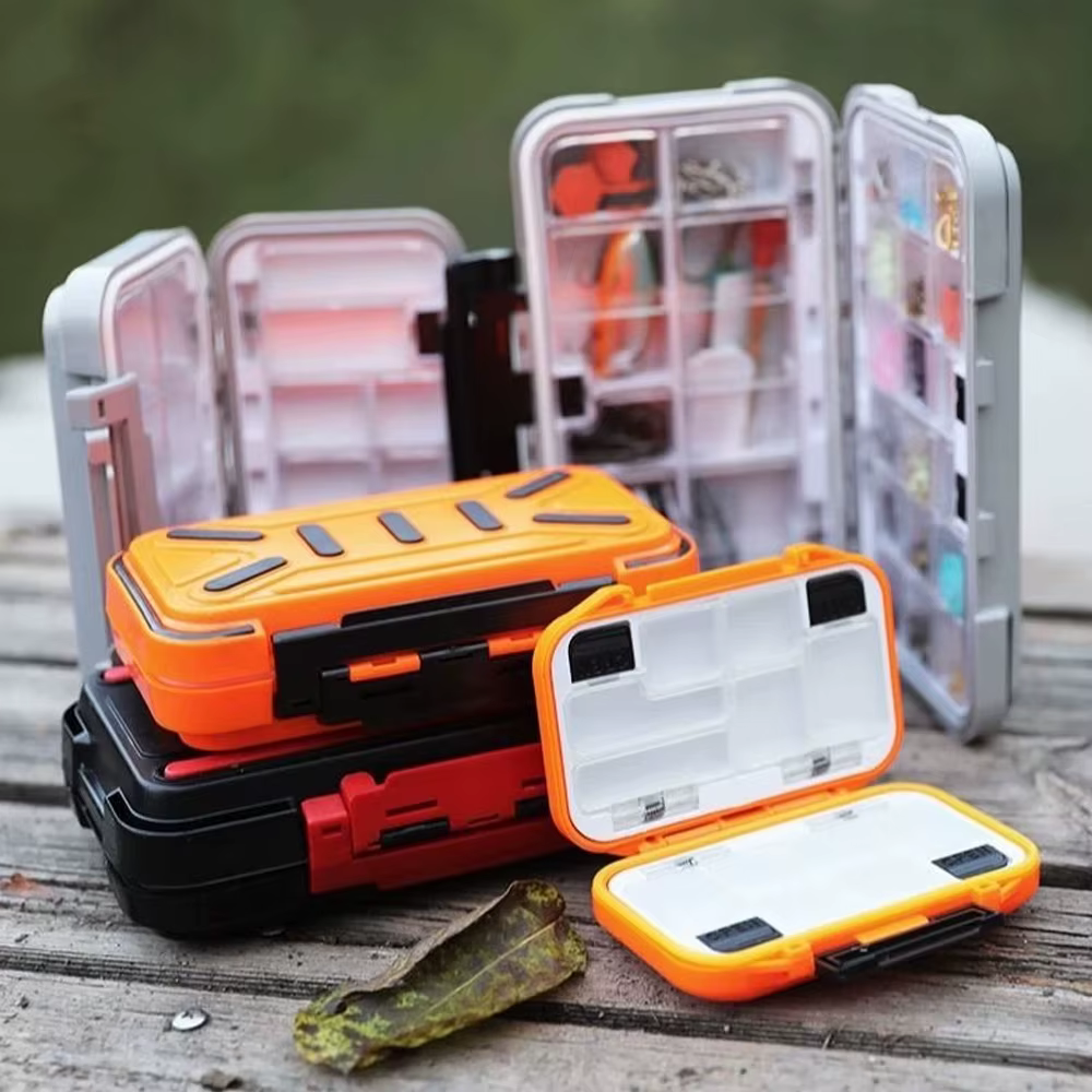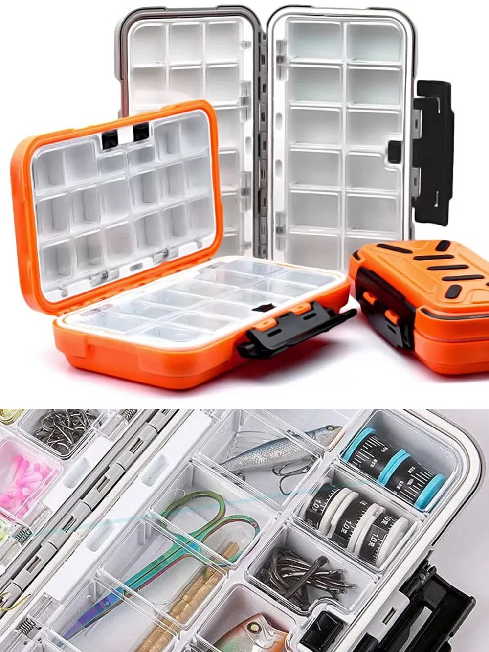 Cajas de aparejos de pesca Almacenamiento impermeable Gancho de cebo Accesorio de señuelo Apertura de doble capa Estuche de herramientas multifuncional portátil Caja de compartimentos deflectores desmontables de varios tamaños
