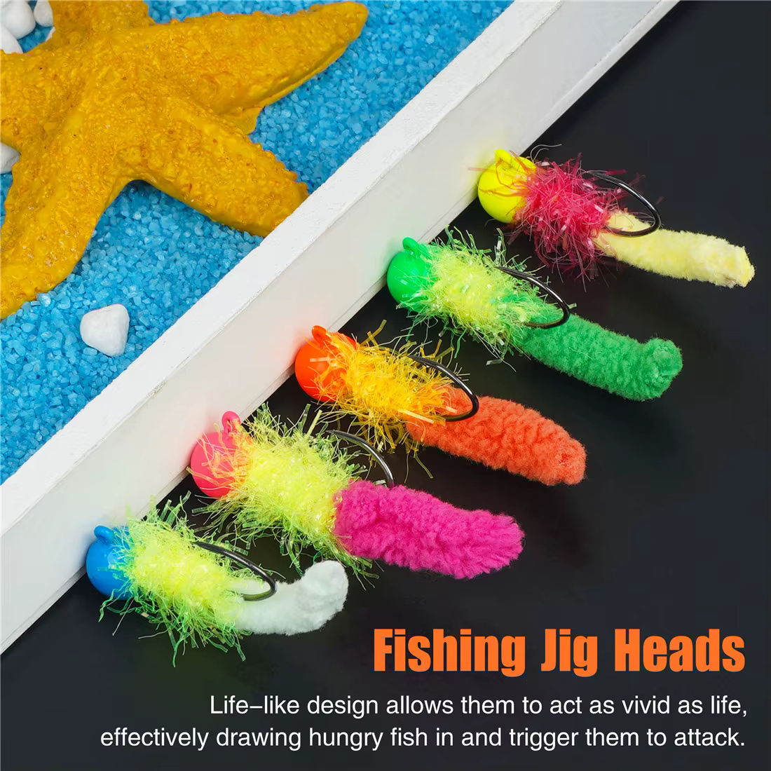 2. Jigs de cabeza redonda con diferentes colores para combinar con diferentes entornos y capturar muchas especies como trucha, lubina, salmón, Steelhead, Crappie, Panfish y Walleye, etc.