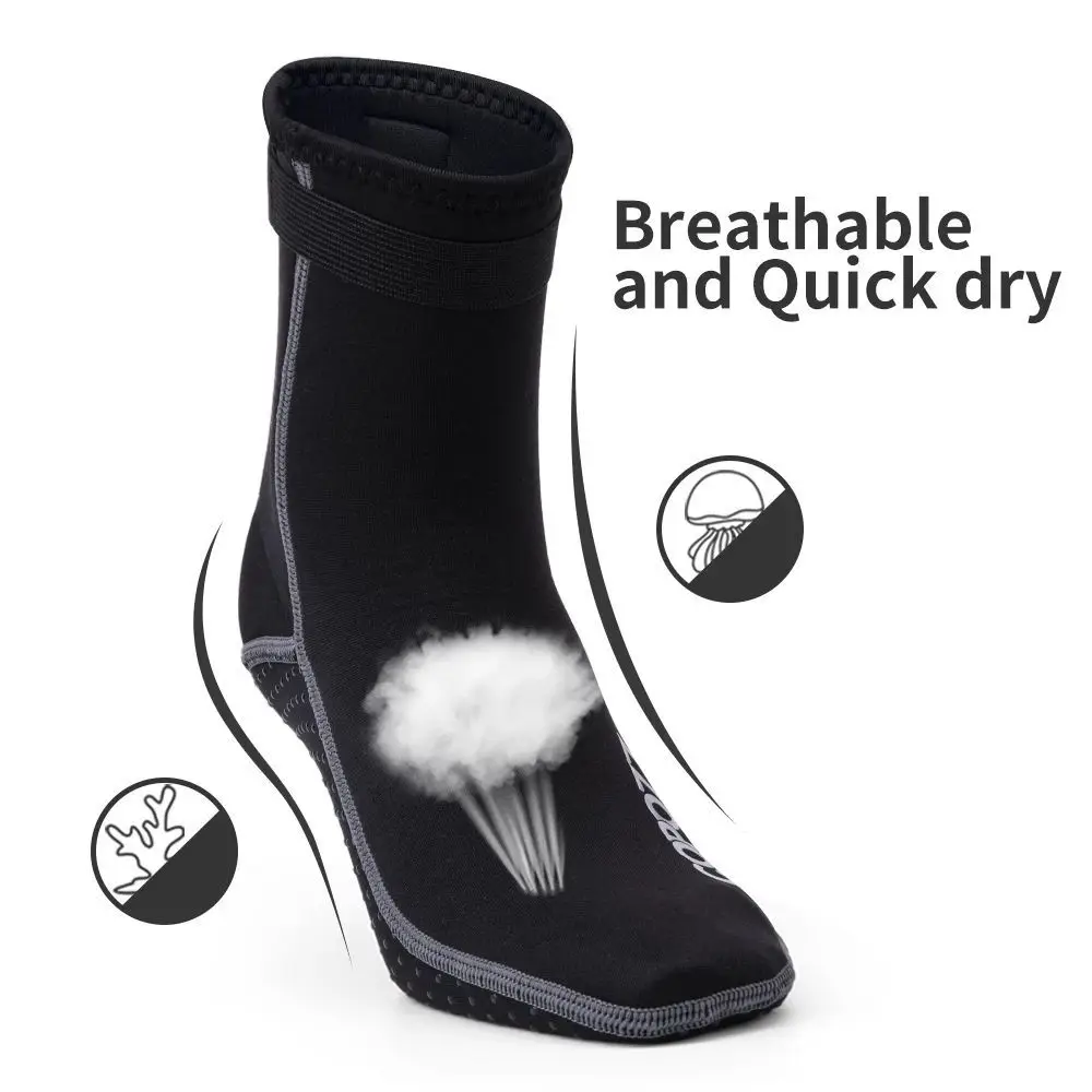 100% nuevo y de alta calidad. Tipo: buceo Calcetines Material: neopreno Tamaño: como se muestra en la imagen Color: Negro Características: Mantén los pies calientes y los protege de daños. Hecho de neopreno premium de 3mm y material de nailon, flexible y cómodo. Las suelas con diseño antideslizante te protegen de resbalones fácilmente. Cintas de sujeción ajustables con hebillas, proporcionan un ajuste cómodo para los pies. Ideal para nadar, snorkel, navegar, surf, caminar, etc. Lista de paquetes: 1 par de calcetines Notas: 1. Debido a la diferencia del monitor y efecto de la luz, el color real del artículo puede ser ligeramente diferente al color mostrado en las imágenes. 2. Permite una desviación de medición de 1-3cm debido a la medición manual.