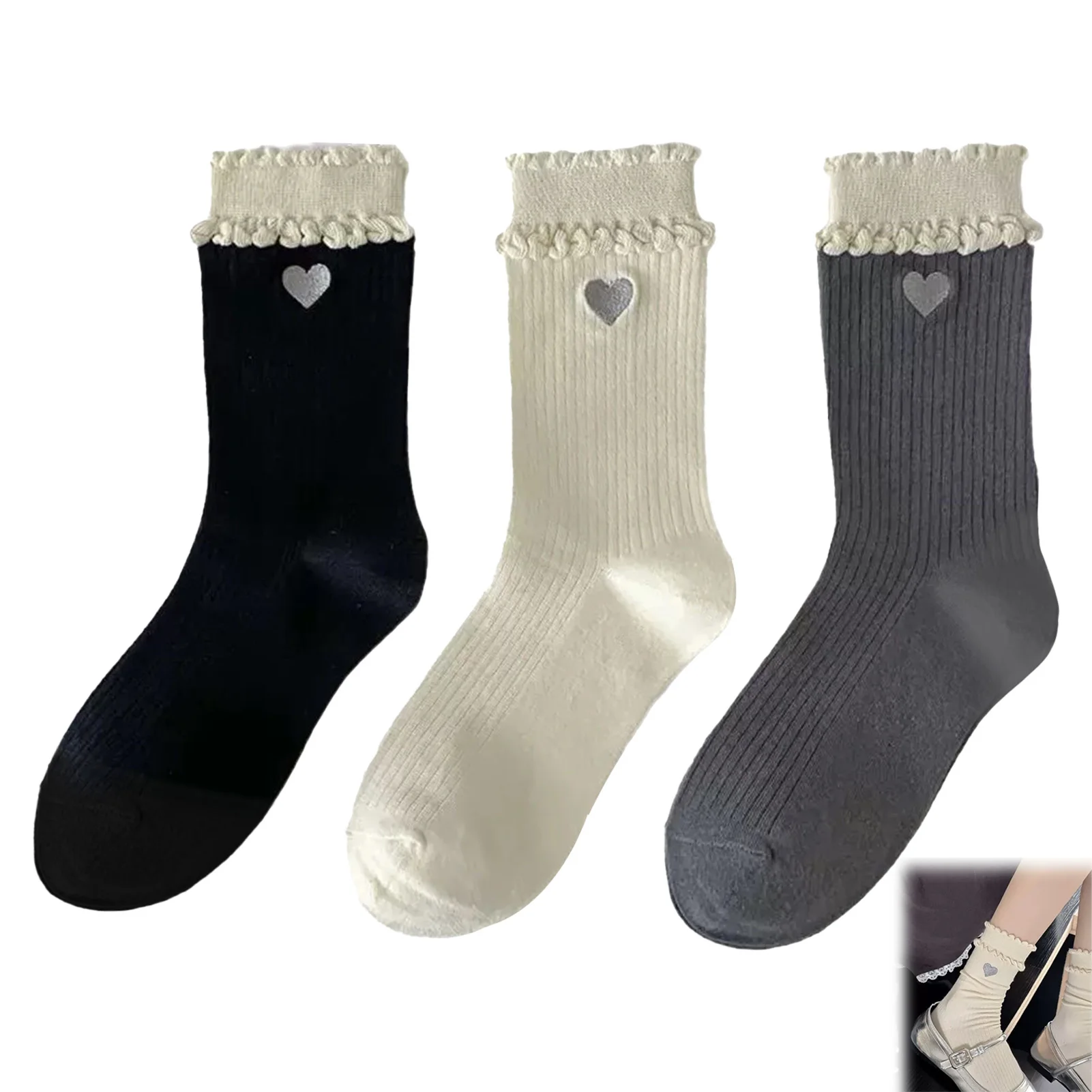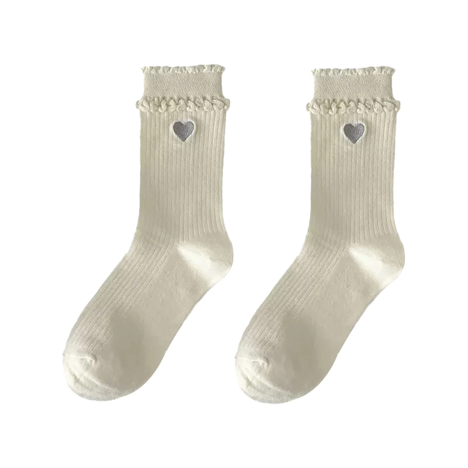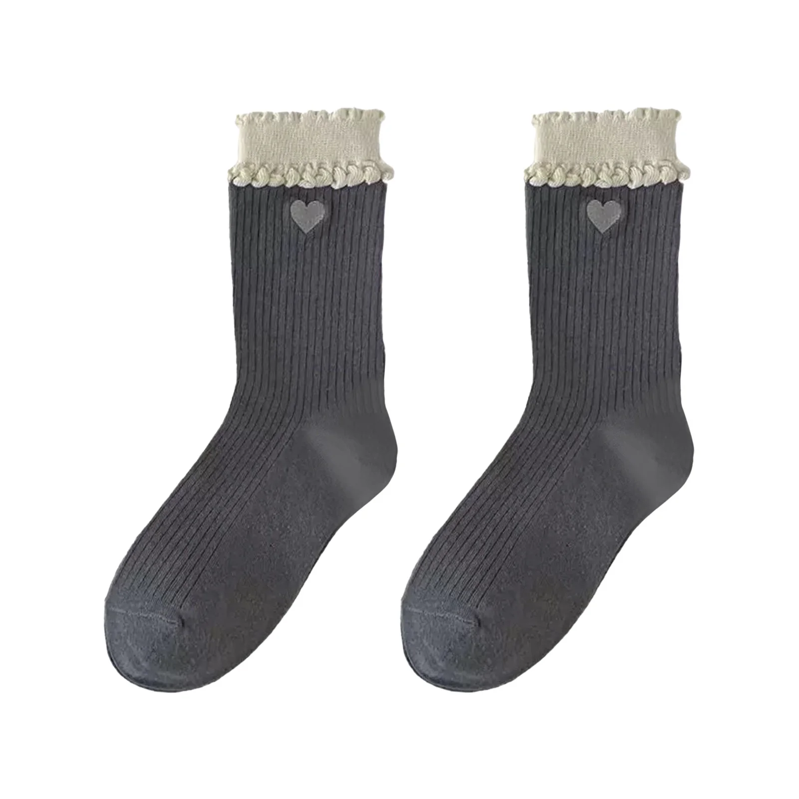 Diseño elegante: con un patrón de corazones bordado y un cálido borde floral, estos calcetines de tubo medio añaden un toque de encanto a tu atuendo, convirtiéndolos en un accesorio ideal para primavera y otoño.