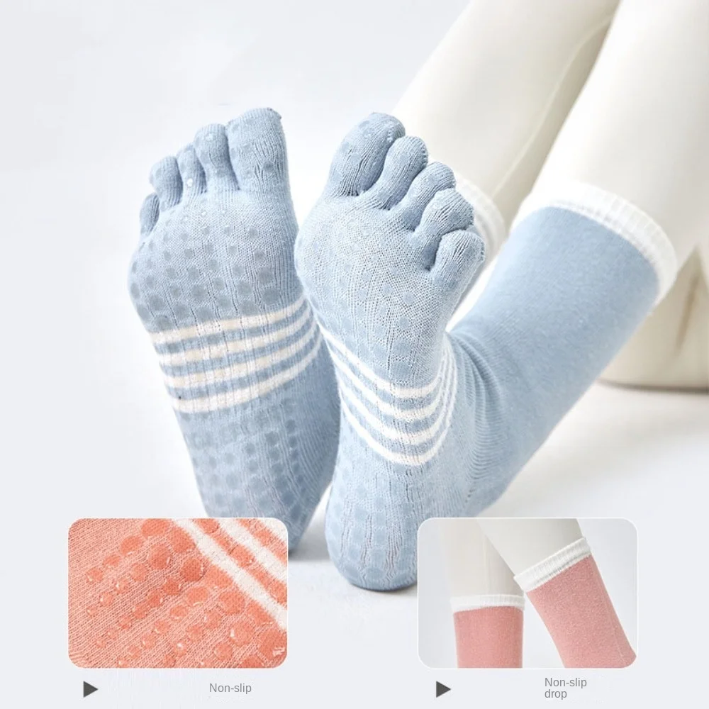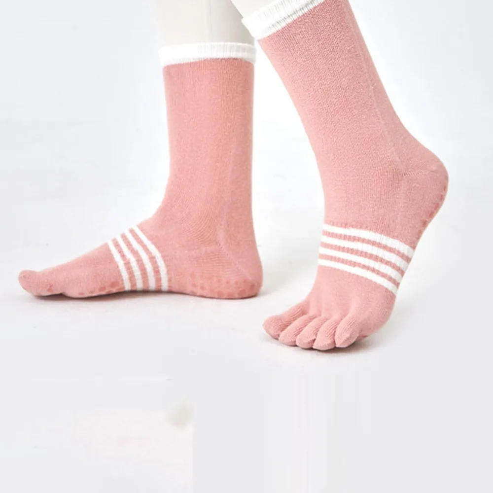 3. Diseño de 5 dedos: el diseño de 5 dedos mejora la potencia de sus movimientos y se adapta al calcetín a sus pies, evitando que se amontonen. El calcetín le permitirá mover y extender los dedos de los pies fácilmente y lucirá elegante.