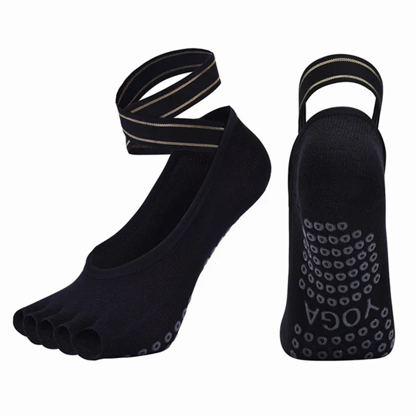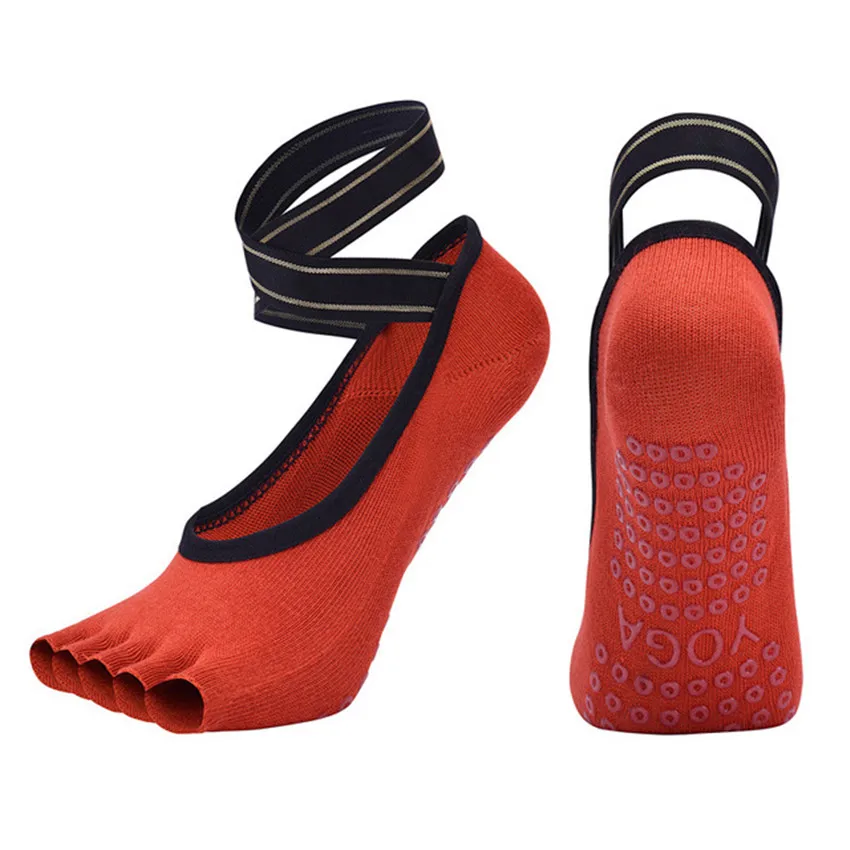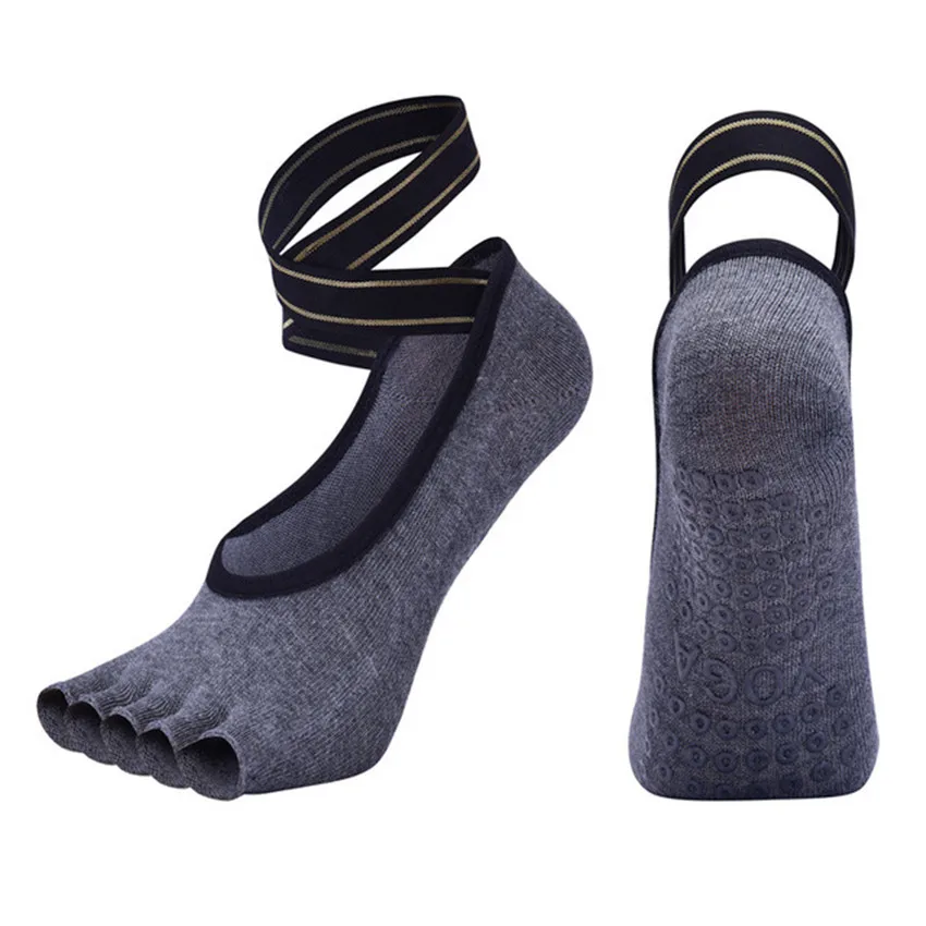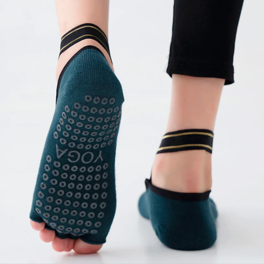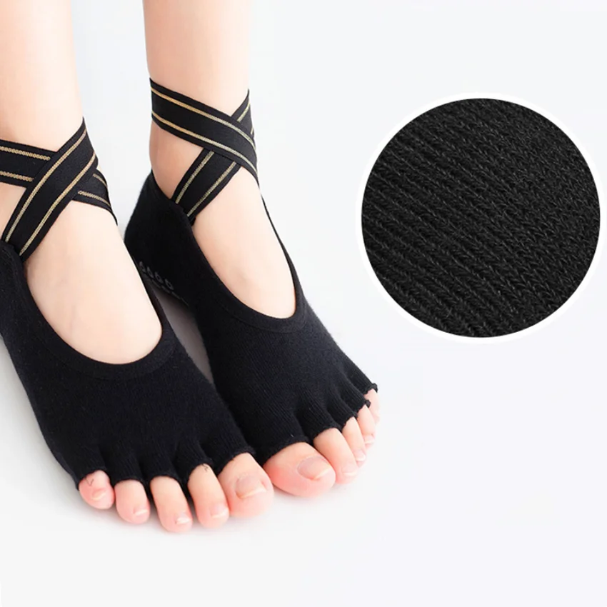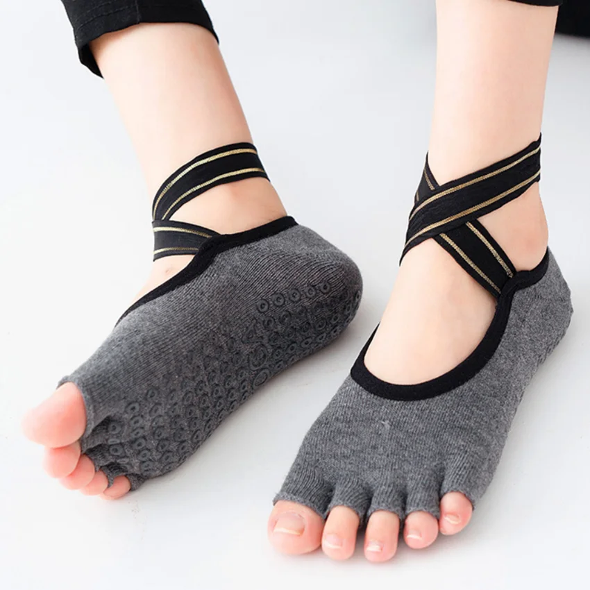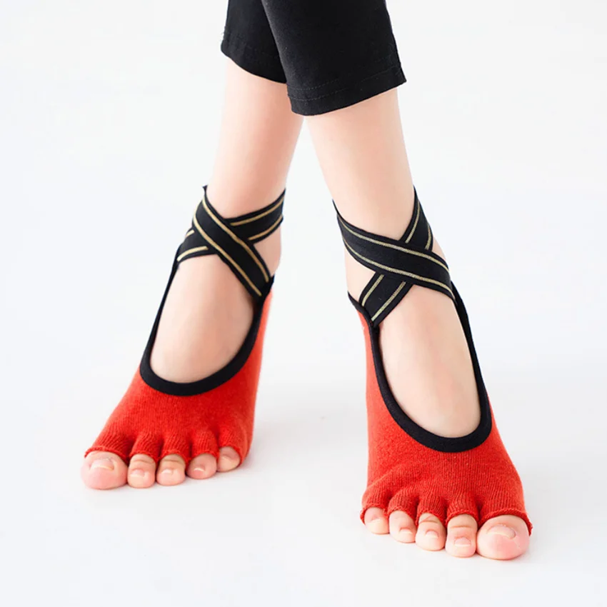 Calcetines de Yoga con correas cruzadas de cinco dedos, calcetines transpirables antideslizantes sin costuras para Ballet, danza, Pilates, Fitness, gimnasio, deporte, calcetines de medio dedo