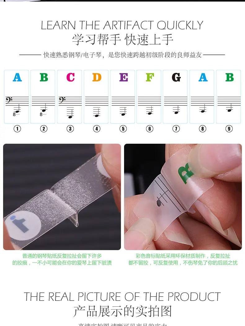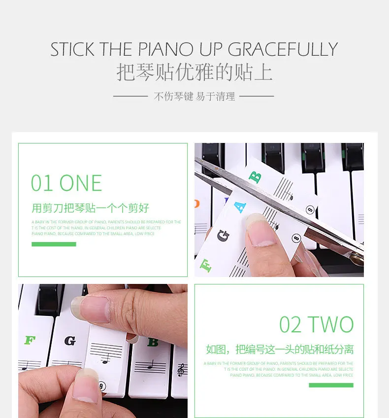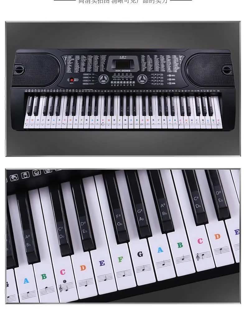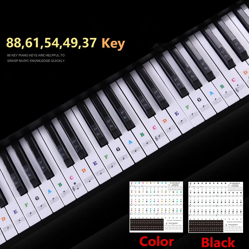 Negro o Color Transparente desmontable música calcomanía notas piano teclado pegatinas 37-88 clave Piano Electrónico espectro pegatina símbolo