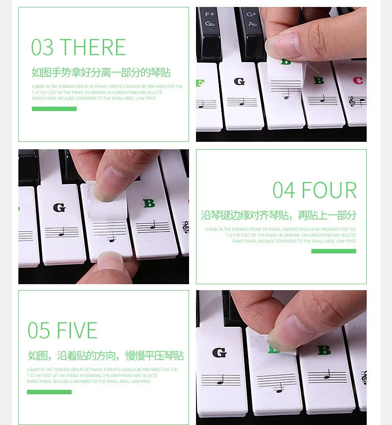 6. Estas pegatinas son lo suficientemente grandes para que cualquiera pueda verlas fácilmente mientras toca el piano.