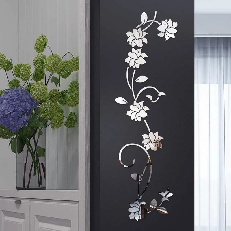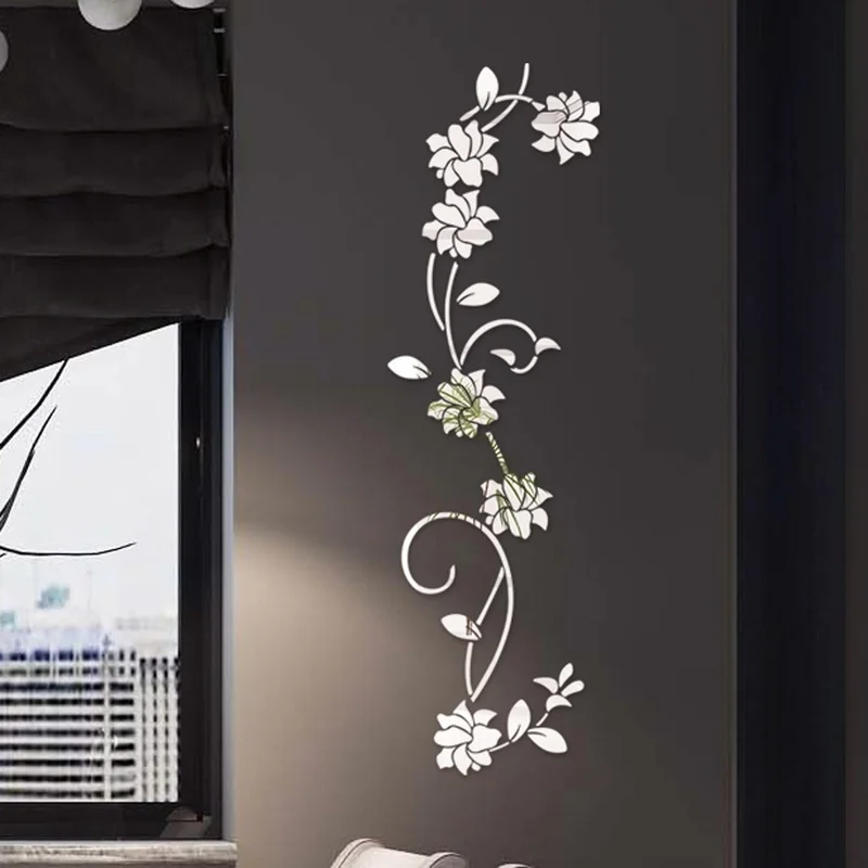 Calcomanía de pared acrílica en forma de flor 3D Diy, accesorios de decoración del hogar románticos estéticos clásicos modernos (negro, dorado y plateado)