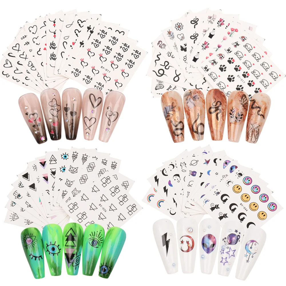 Fácil de usar, transfronterizo, elegante, geométrico, de larga duración, marca de agua expresiva, fácil de despegar, calcomanías para uñas, imprescindible